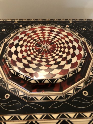 Un exceptionnel et très rare coffret en ébène, écailles rouges et ivoire d'époque Louis XIV.