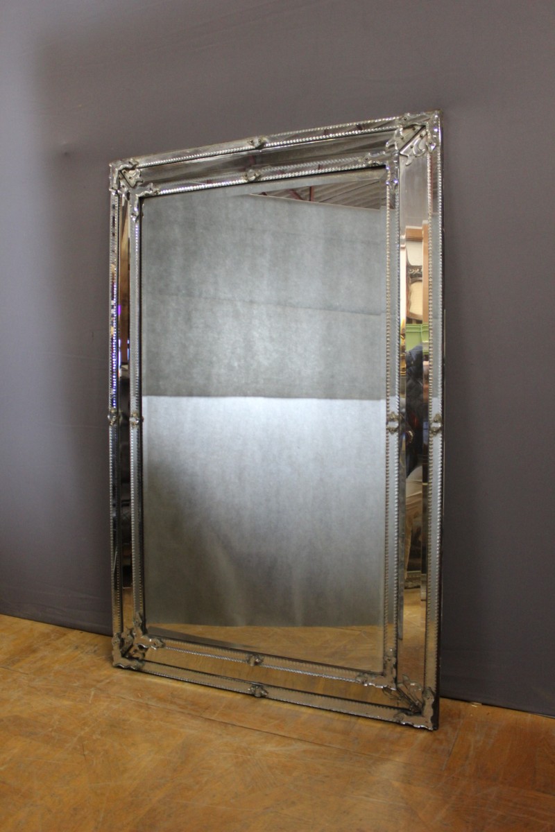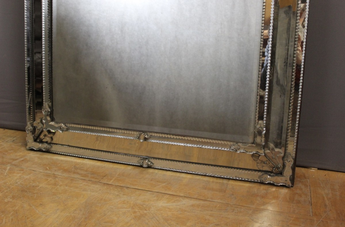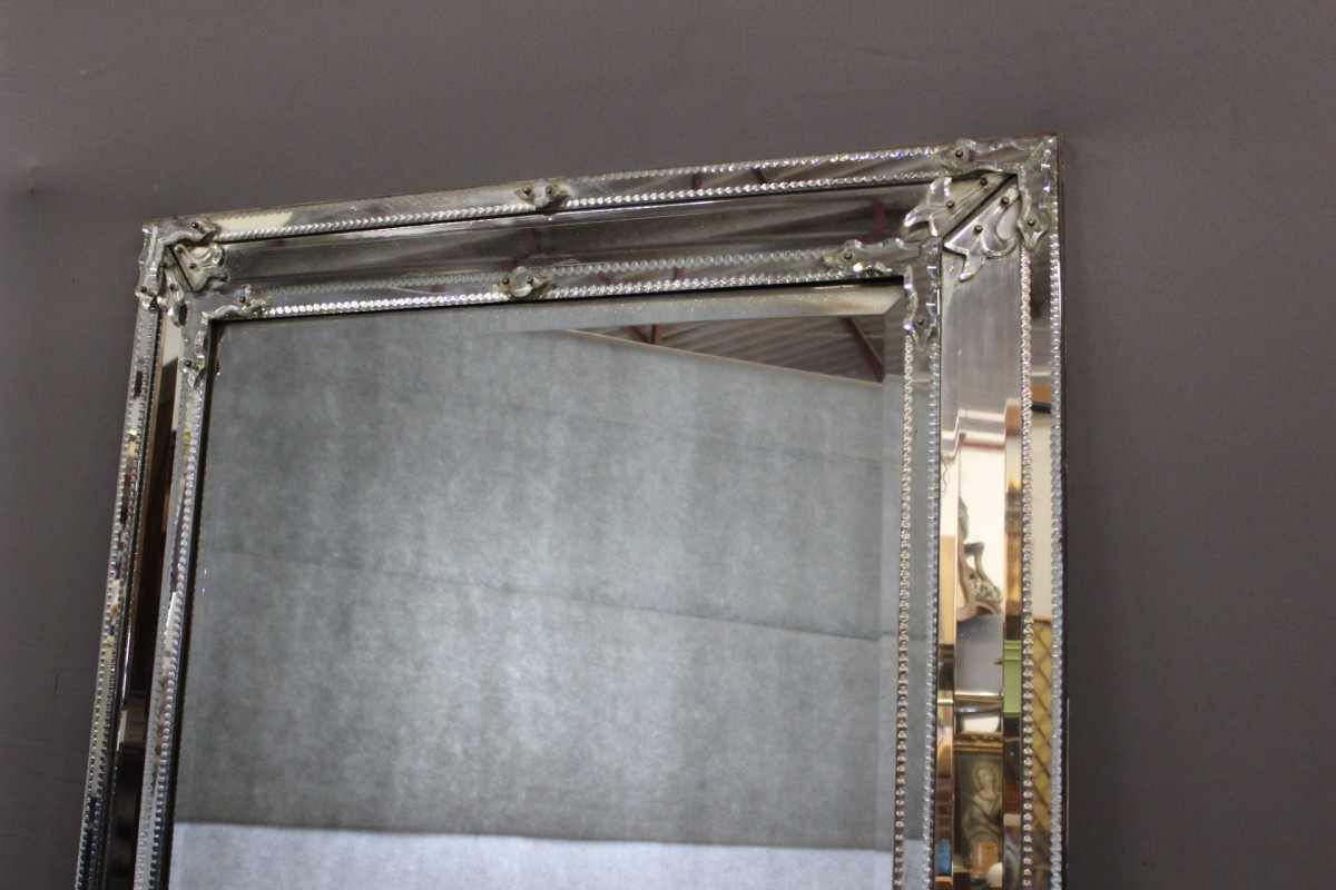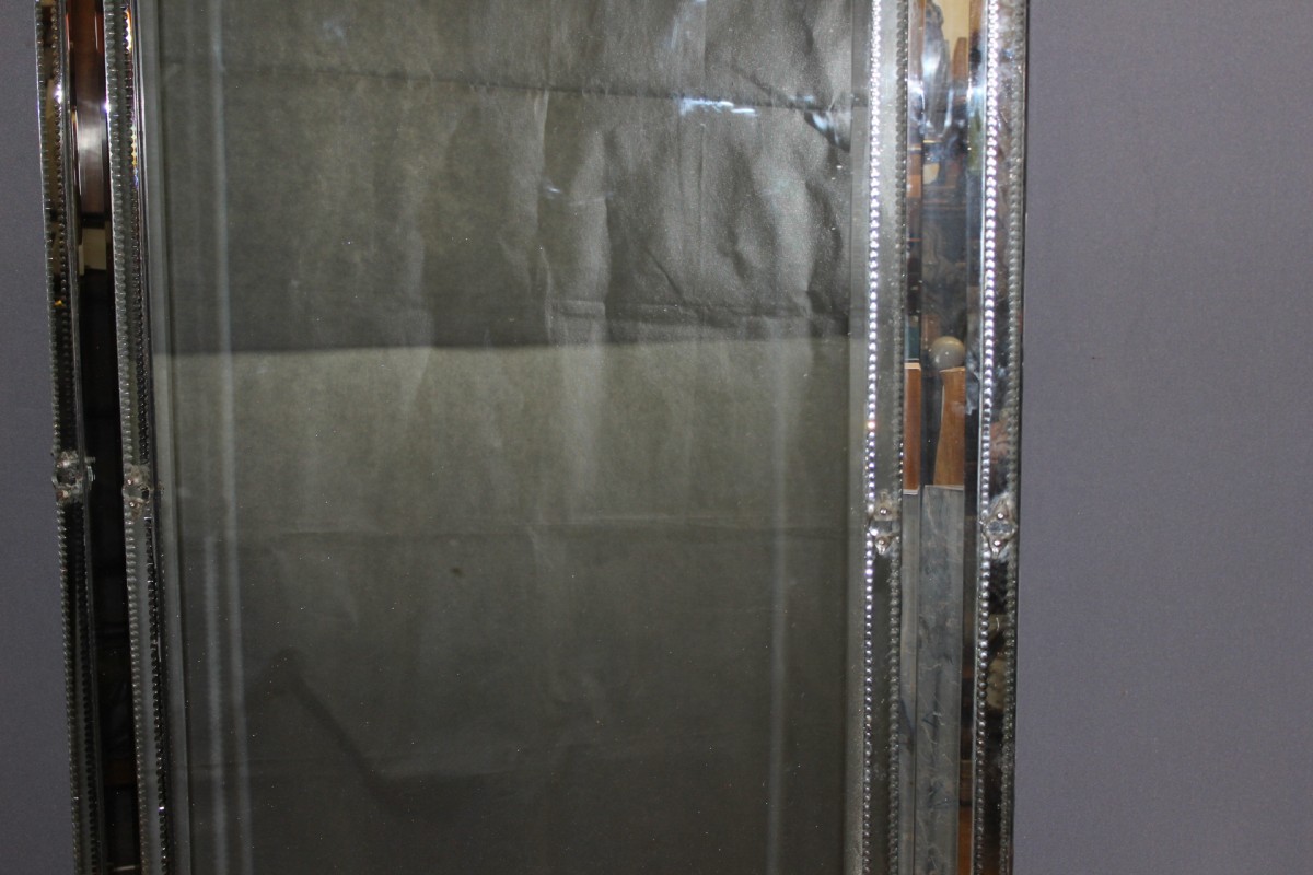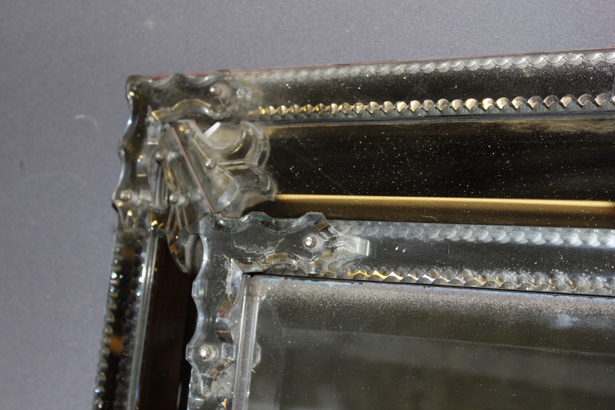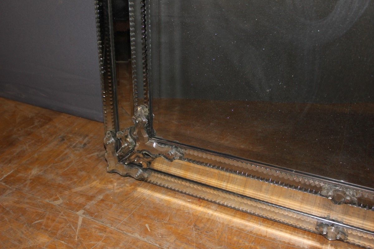 Grand miroir de Venise à parecloses en verre de Murano , miroir central au mercure , possibilité de le placer dans les deux sens , époque deuxième moitié du XIXe siècle , ensemble en très bon état