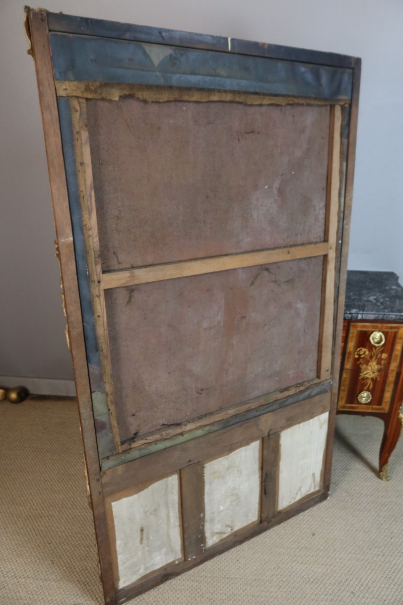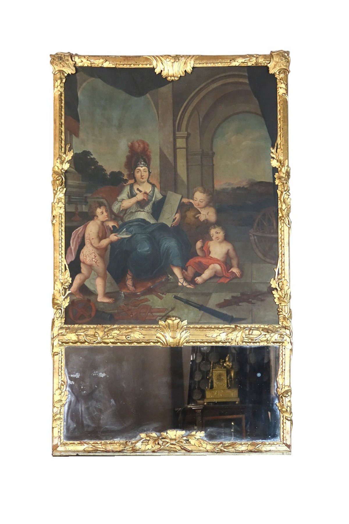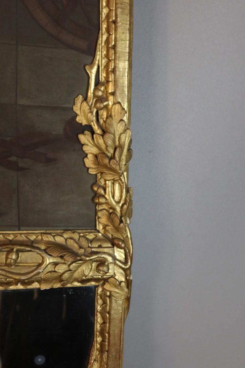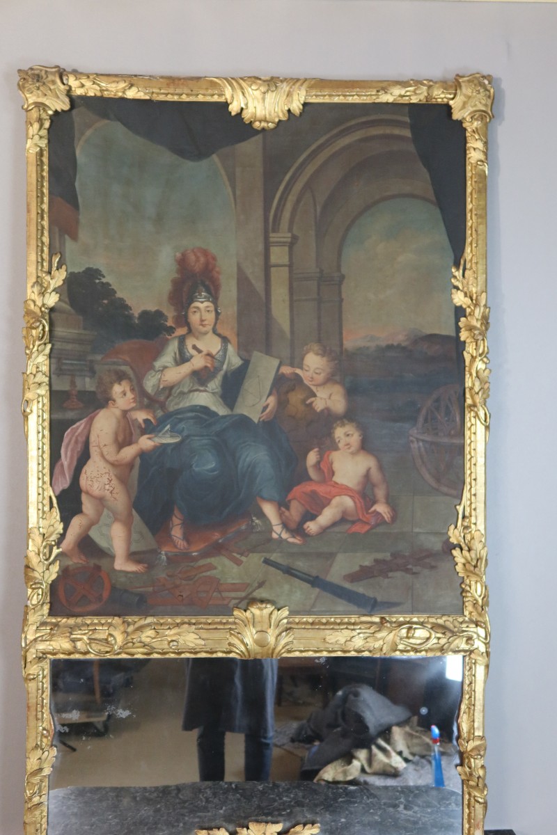 Grand trumeau en bois doré du XVIIIe siècle avec son miroir surmonté d'une très belle toile