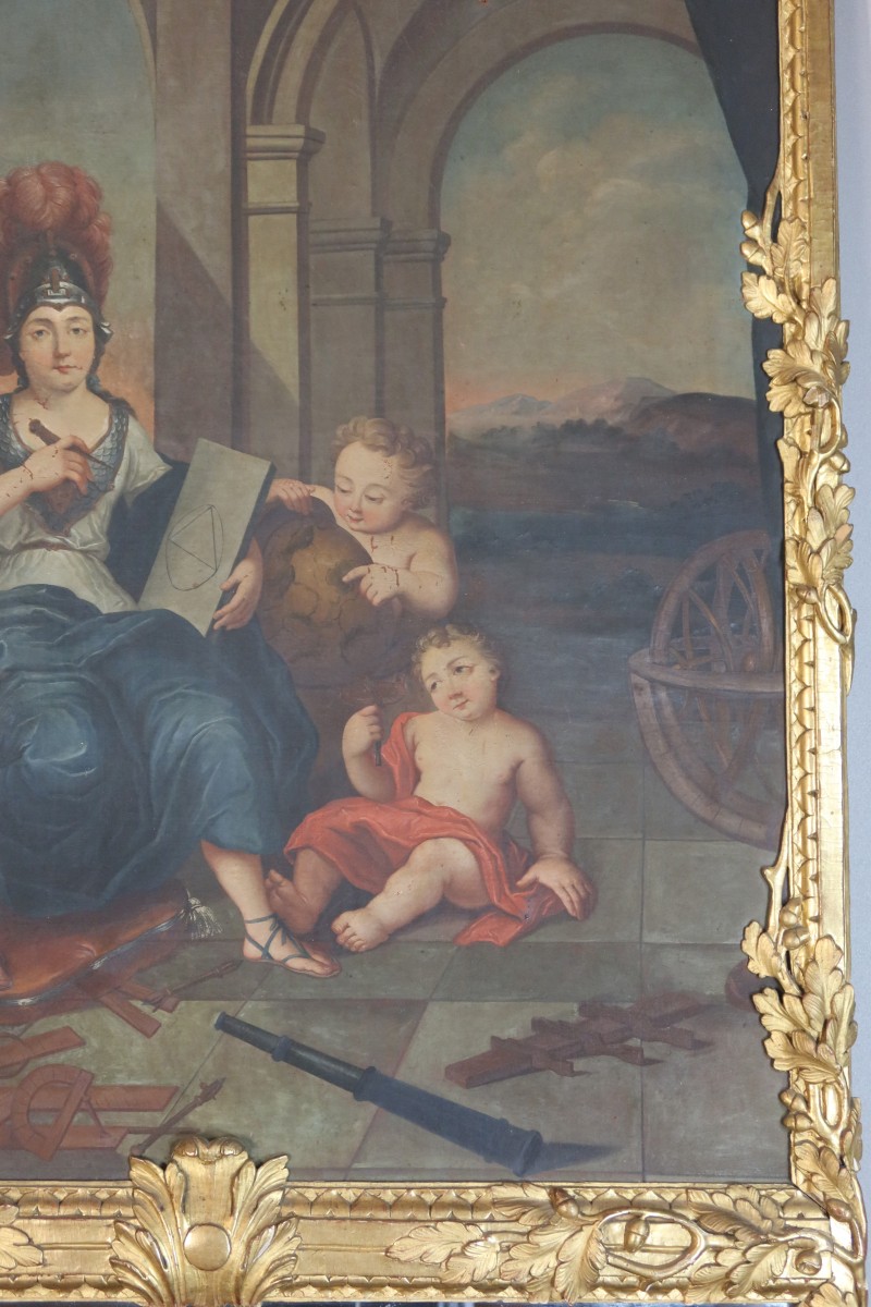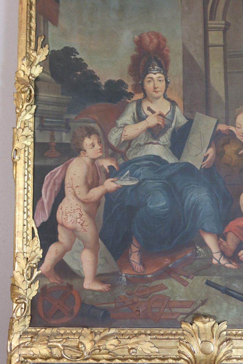 peinte représentant l'allégorie des arts. Bon état général.