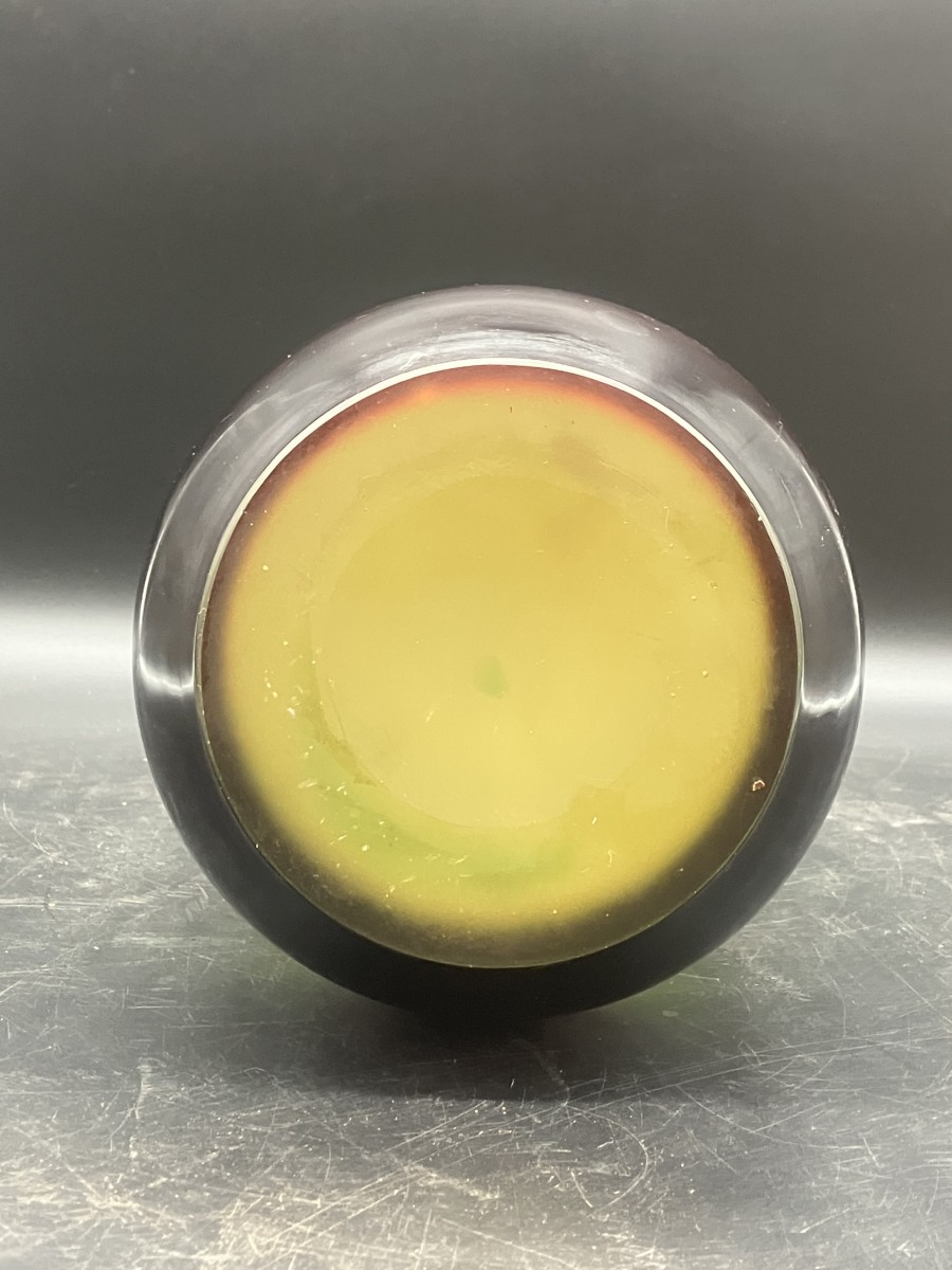 Grand vase Gallé art nouveau, en verre multicouches gravé à l'acide d'un paysage lacuste.