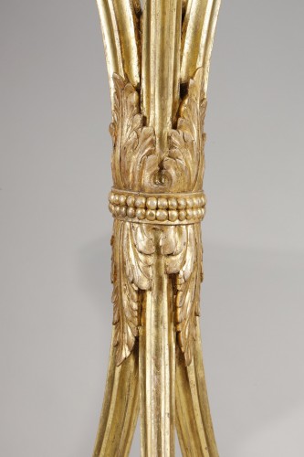 Grande paire de sellettes tripodes en bois et stuc doré finement sculptées.