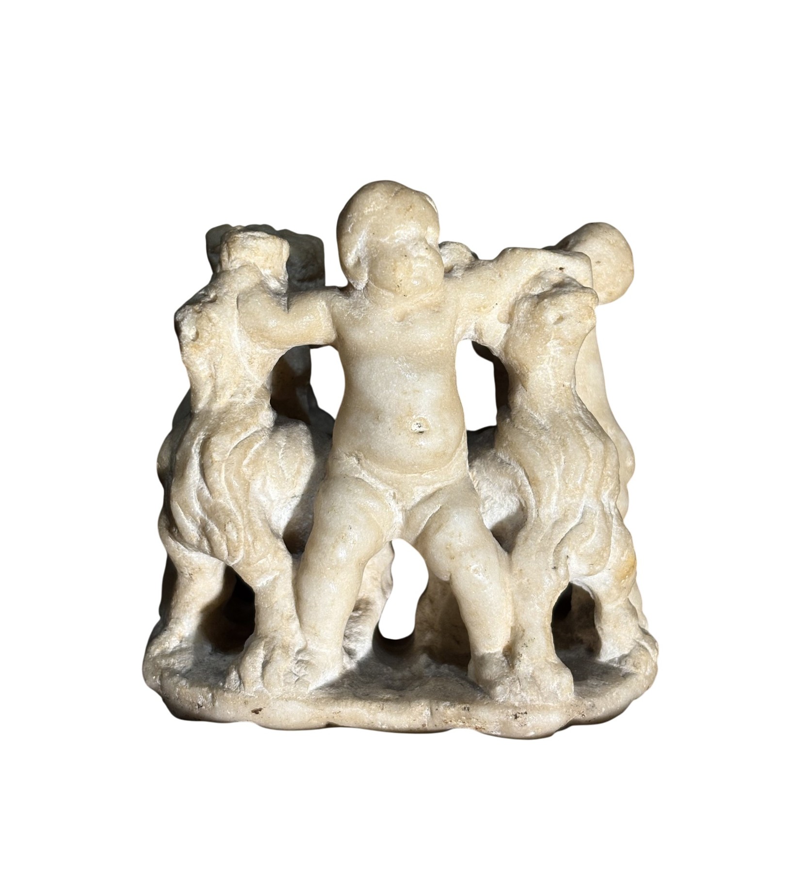 Retrouver le mobilier ou les objets d''art similaires à « Allégorie Putti et lions, petit groupe en marbre, Renaissance italienne 16e siècle » présenté par Antichità San Felice, antiquaire à Pistoia dans la catégorie Sculpture en Marbre Renaissance, Sculpture.