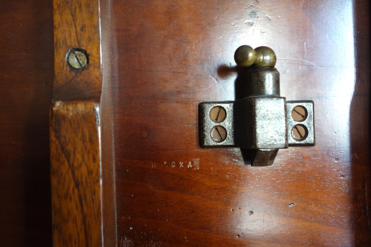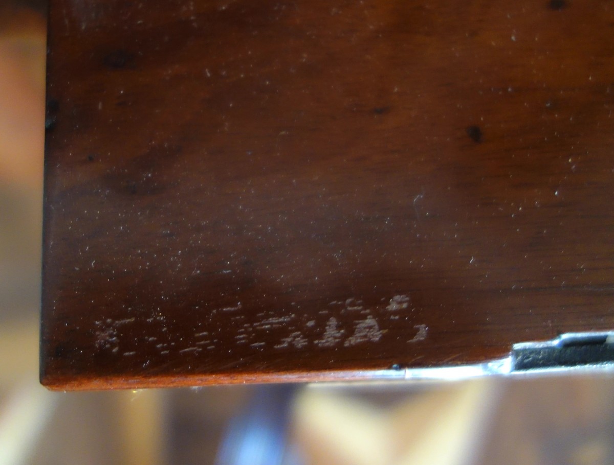 Beau meuble d'amateur, léger et élégant, en très bon état, le vernis ancien a été nettoyé et ravivé par notre ébéniste. Quelques traces d'anciennes restaurations. L'estampille de Canabas est peu profonde, ici elle est appliquée sous le vernis. On la reconnait, mais elle n'est pas parfaitement lisible.