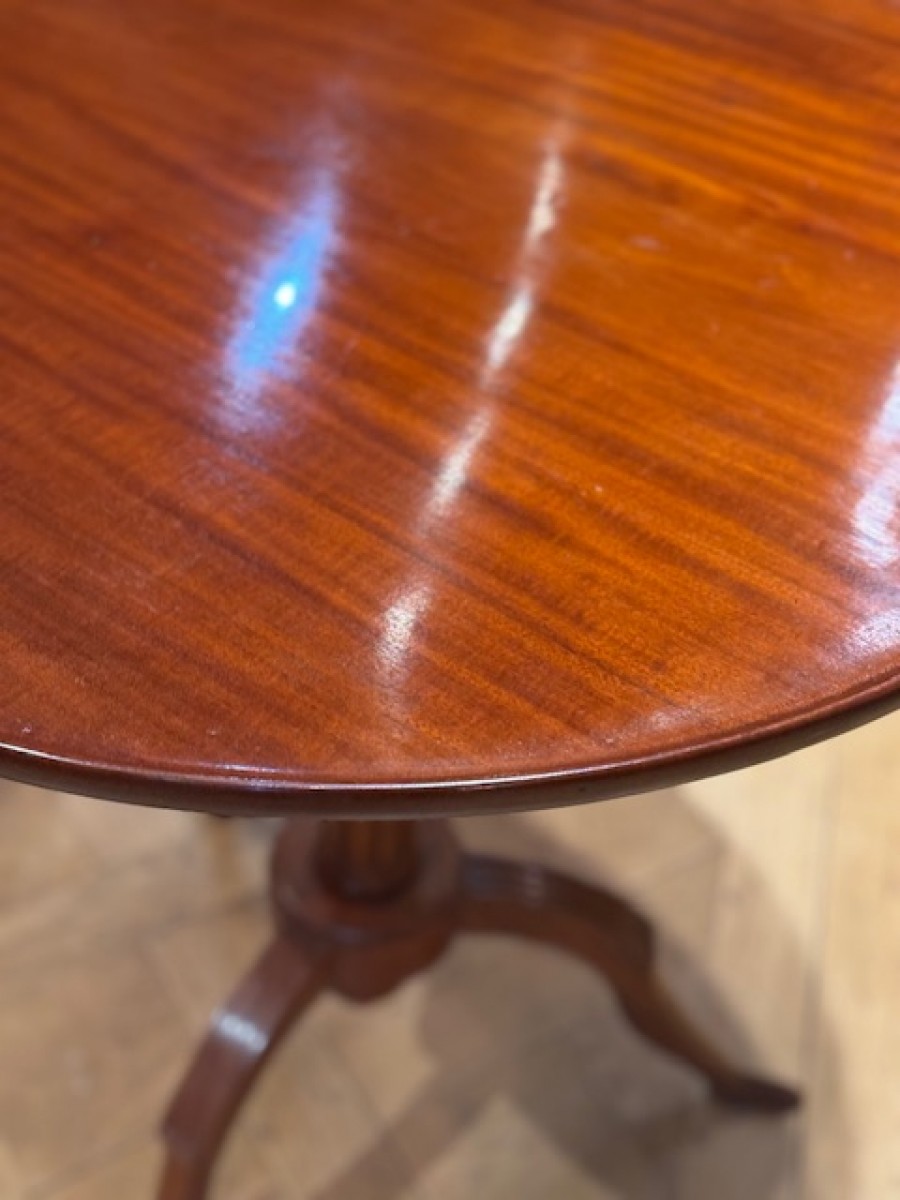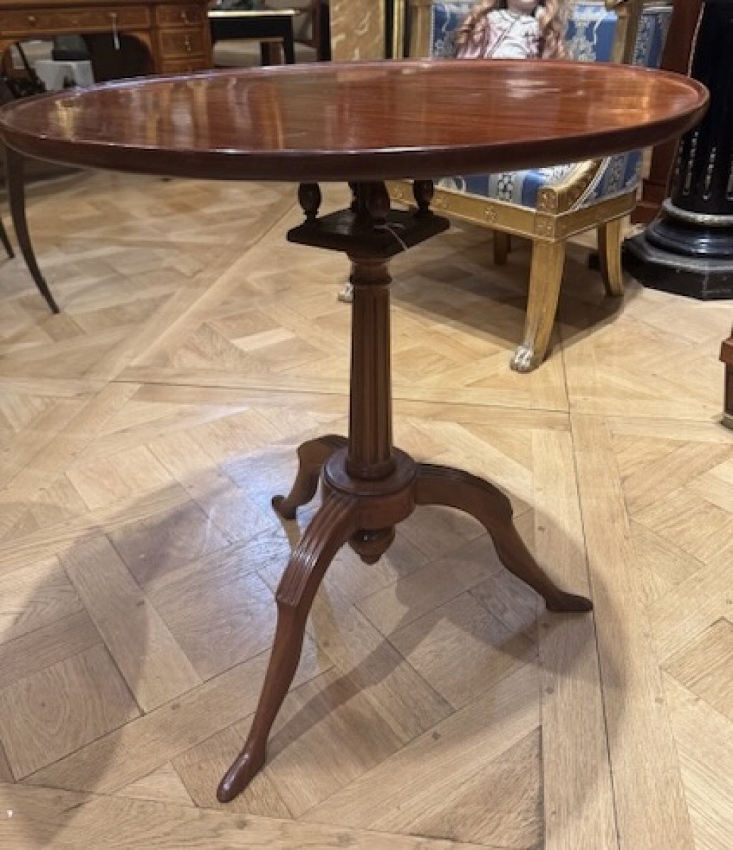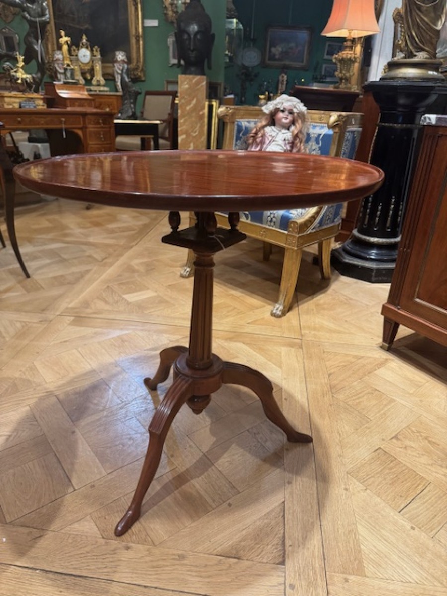 Guéridon en acajou de cuba massif à plateau basculant, attribué à Canabas (1715-1797), reçu maître en 1766. Cannelures et rudentures sur le fût central et sur le piètement.