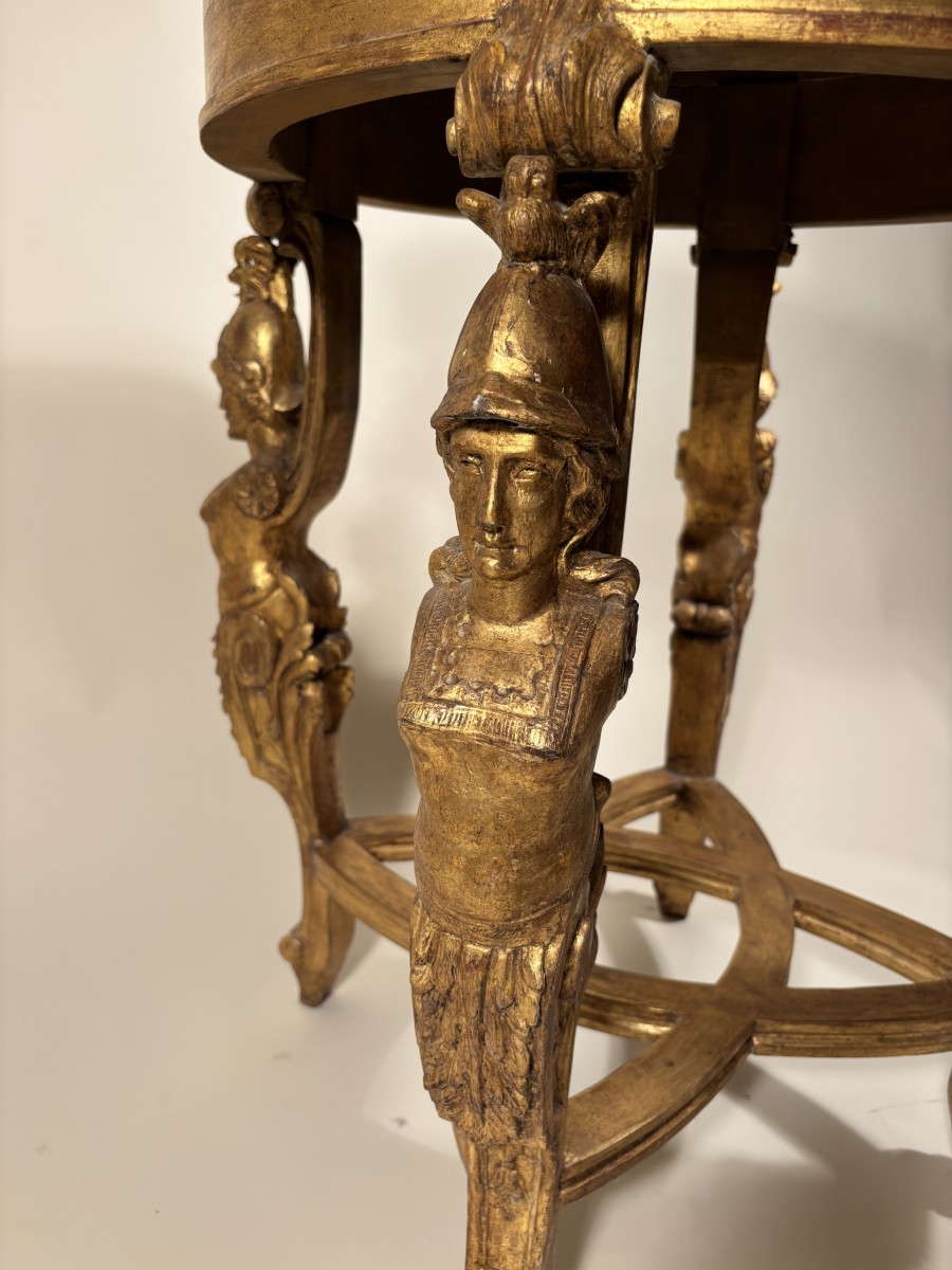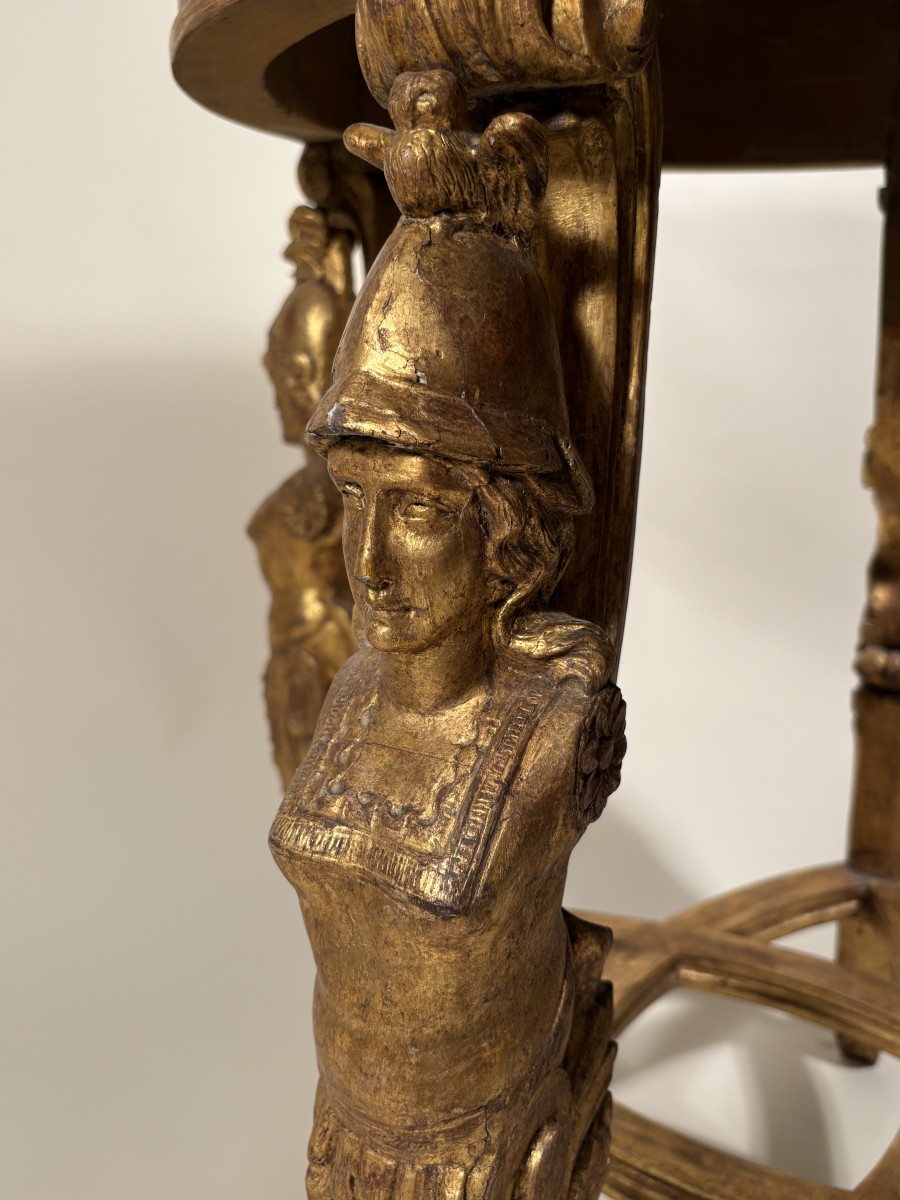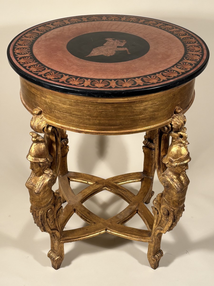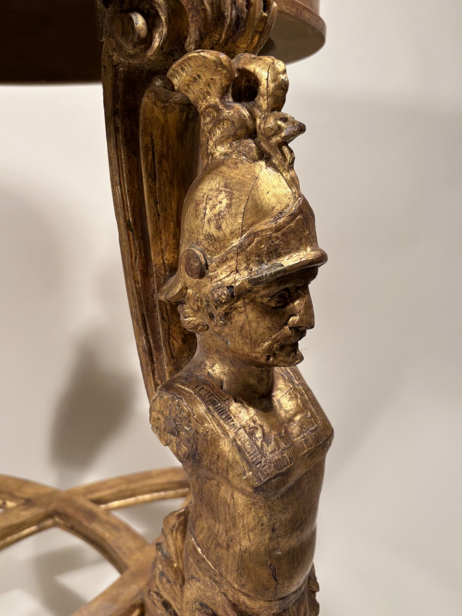 Retrouver le mobilier ou les objets d''art similaires à « Guéridon aux dieux de la Guerre, Italie vers 1840-50 » présenté par Franck Baptiste Provence, antiquaire à L'isle-sur-La-Sorgue dans la catégorie Table & Guéridon Napoléon III, Mobilier.