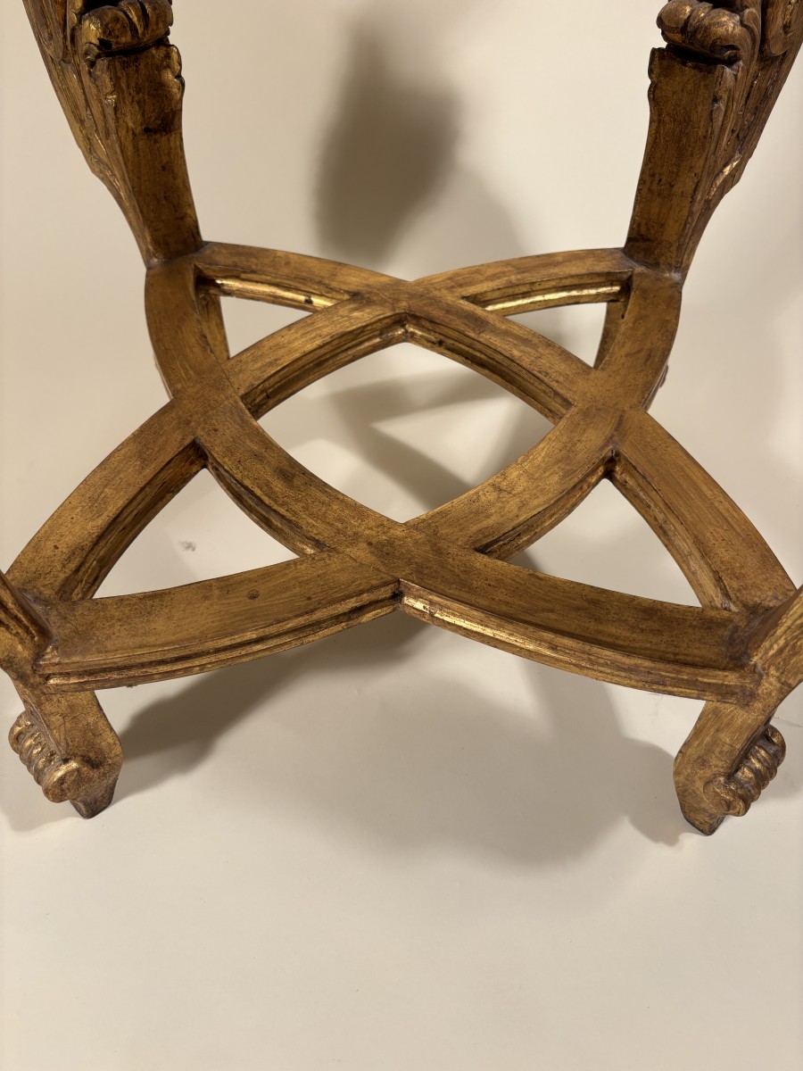 Rare guéridon de forme circulaire en bois de tilleul doré à la feuille.