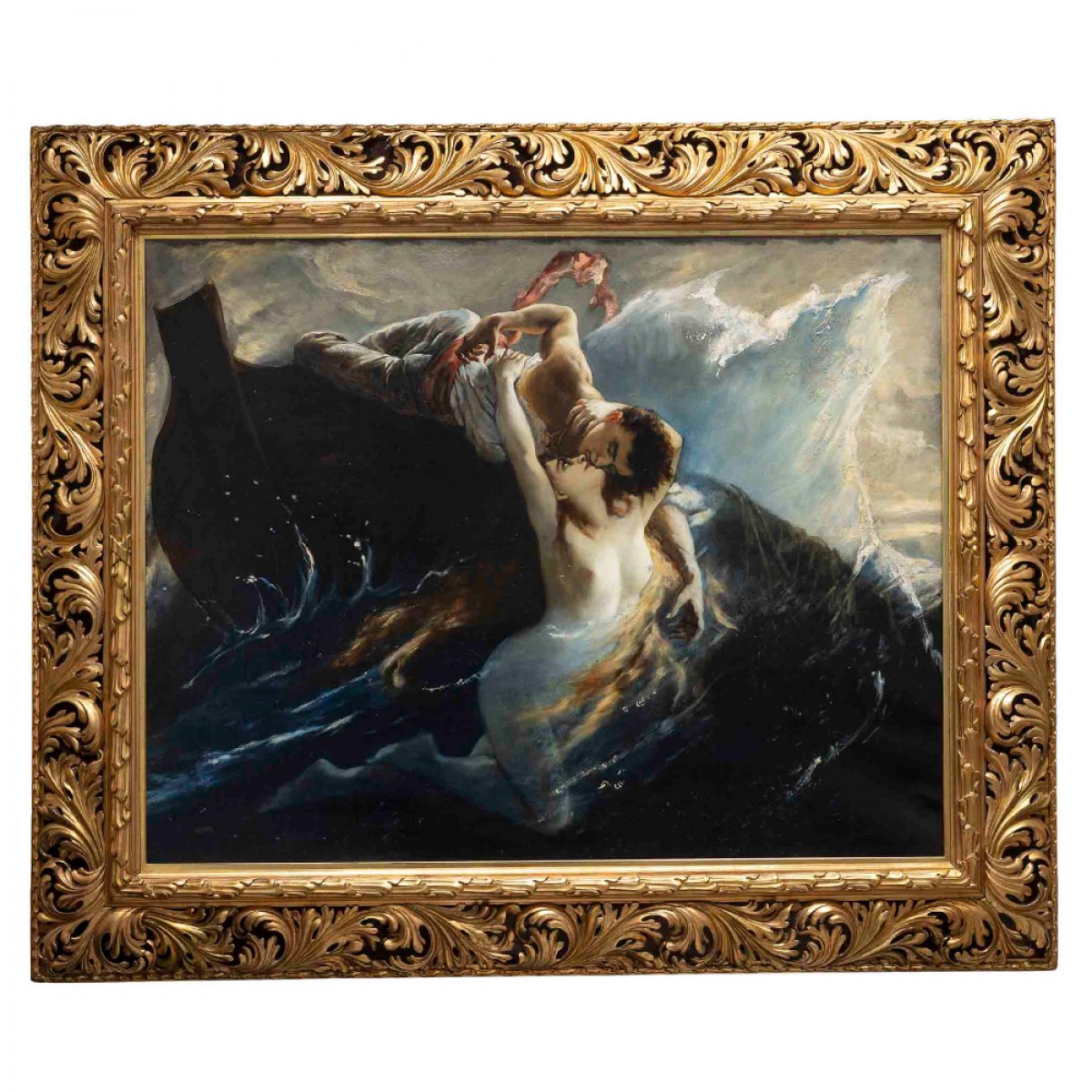 Retrouver le mobilier ou les objets d''art similaires à « Gustav Wertheimer (1847–1902) - Le baiser de la Sirène 1879 » présenté par Florian Kolhammer, antiquaire à Vienna dans la catégorie Tableaux XIXe siècle Empire, Tableaux et dessins.