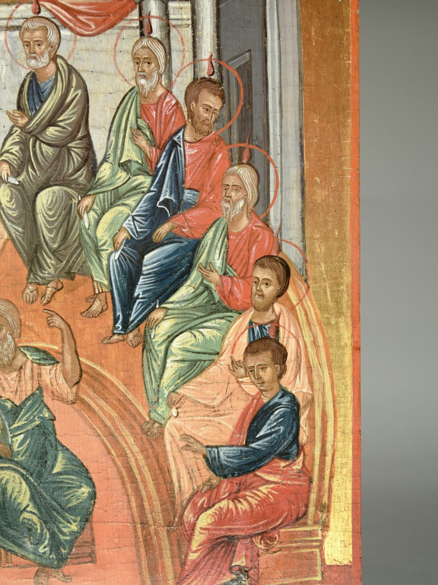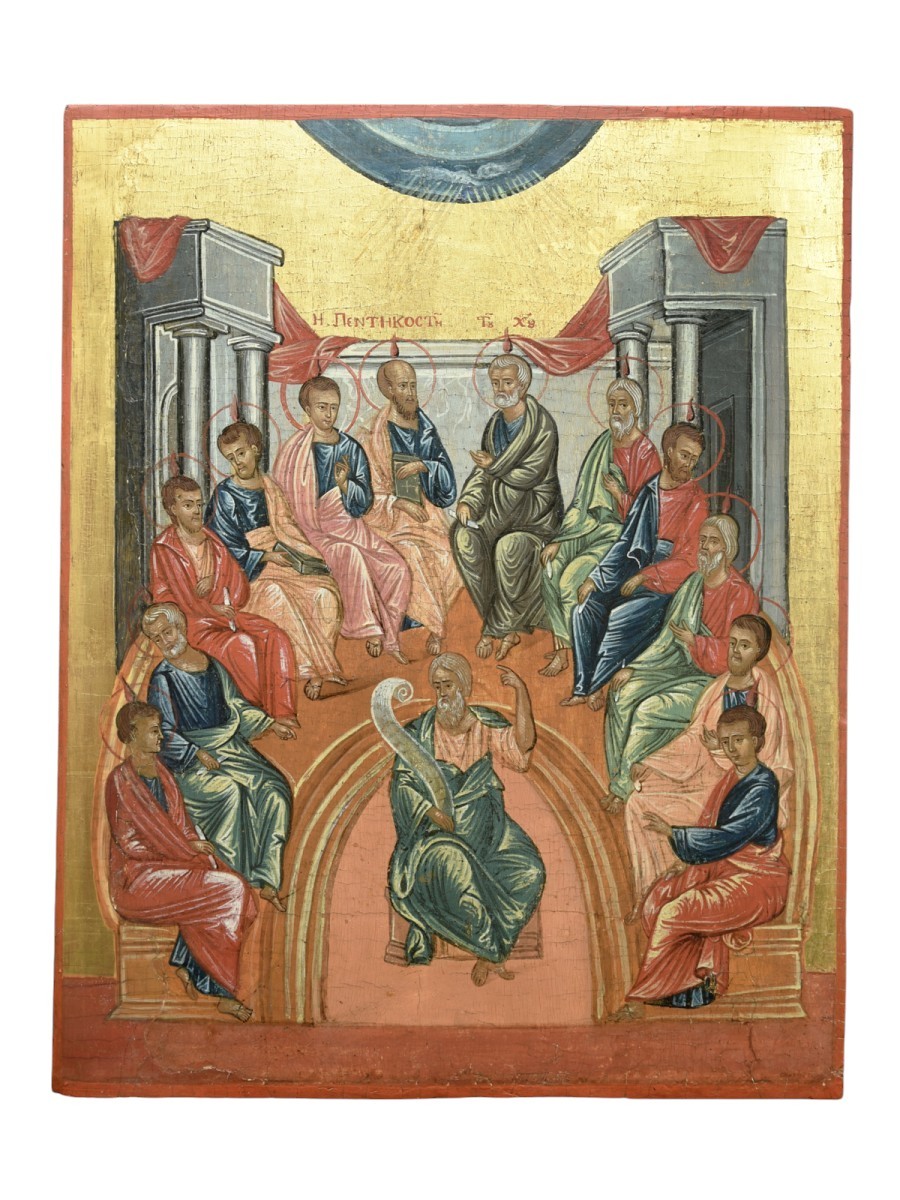 Lìcône montre l'envoi du Saint Esprit aux apôtres 50 jours après la mort