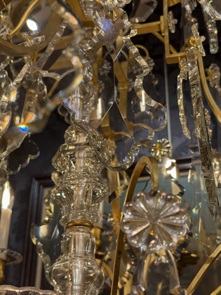 En excellent état de conservation, ce lustre a été nettoyé et conserve sa dorure d'origine. Il est électrifié selon les normes européennes, avec possibilité d'adaptation aux standards américains sur demande.