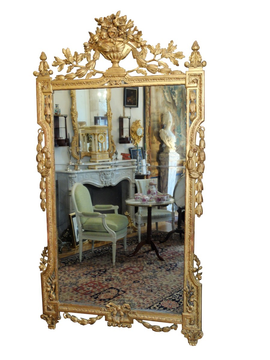 Important miroir en bois sculpté et doré d'époque Louis XVI.