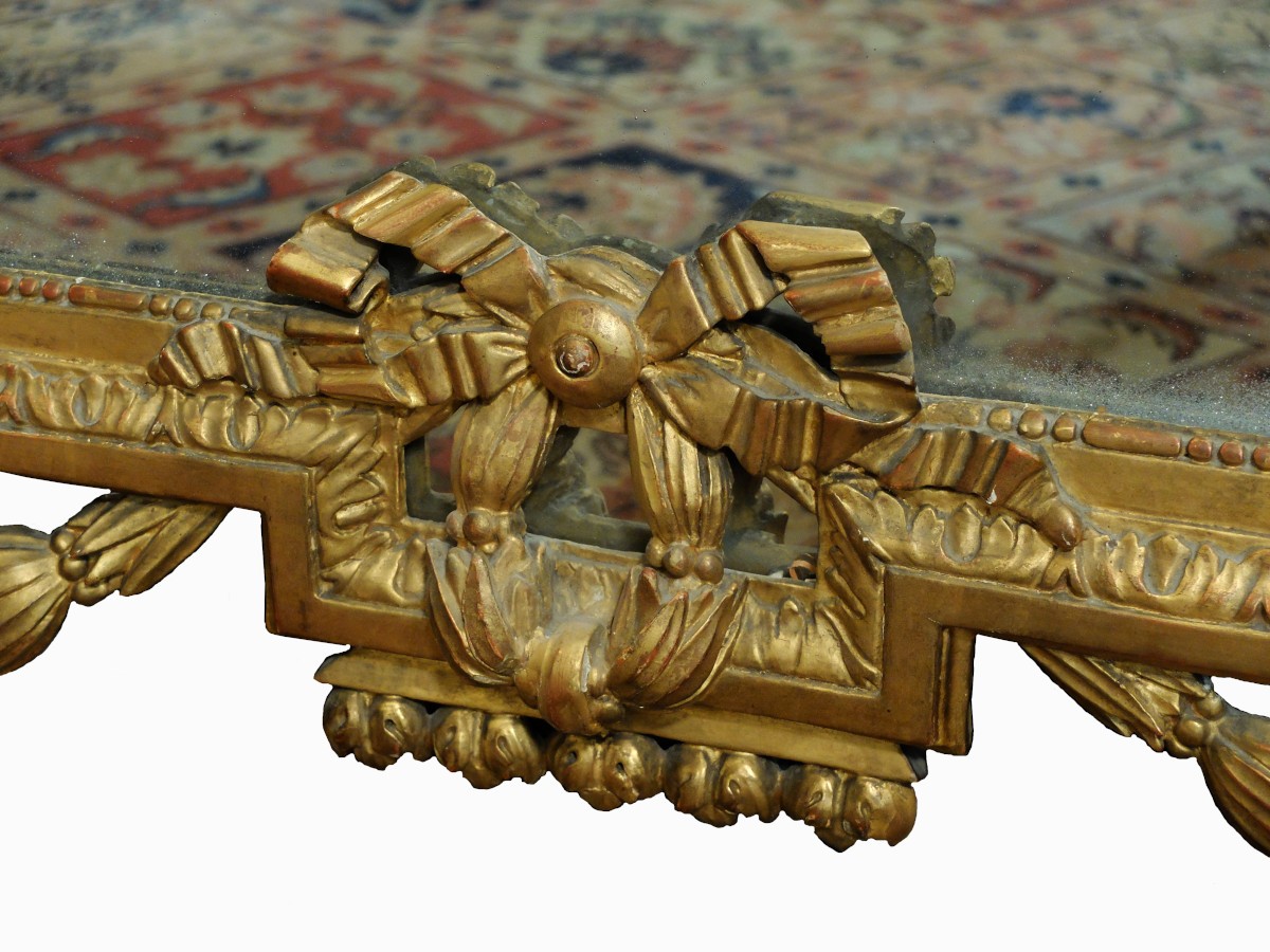 Nous les retrouvons dans la traverse basse du miroir, nouées au milieu du miroir par un beau noeud Louis XVI.
