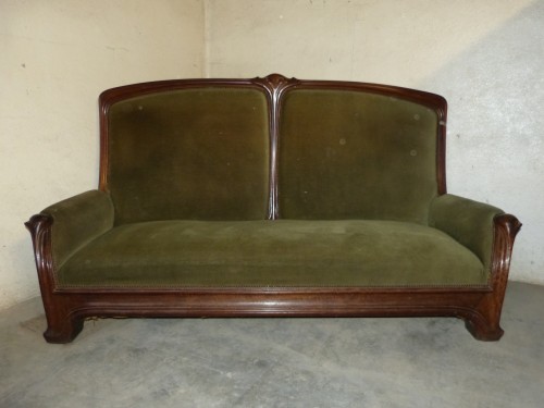 Retrouver le mobilier ou les objets d''art similaires à « Important Salon Art nouveau en bois de Padouk, Ecole de Nancy » présenté par Galerie Vaudemont, antiquaire à Nancy dans la catégorie Canapé & Mobilier de Salon Art nouveau, Sièges.