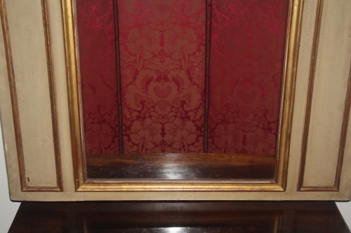 Important et élégant trumeau laqué vert d'eau décoré d'une scène champêtre
