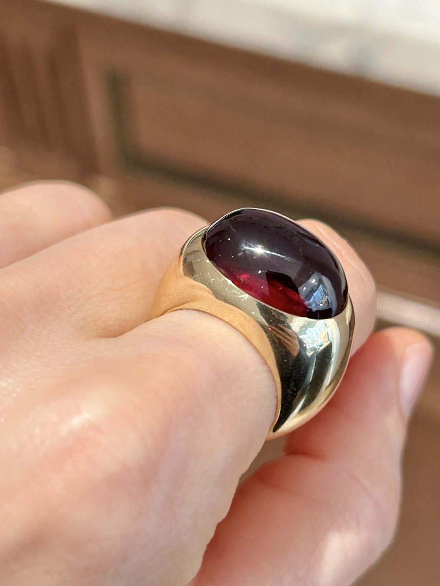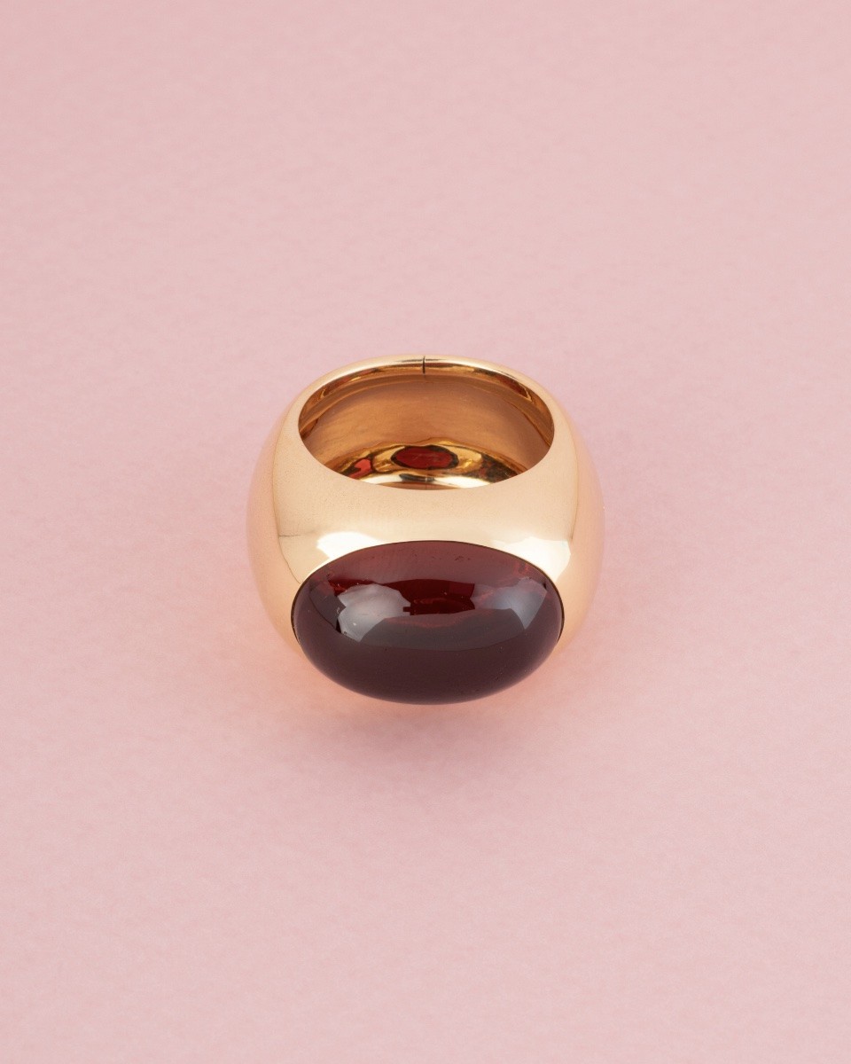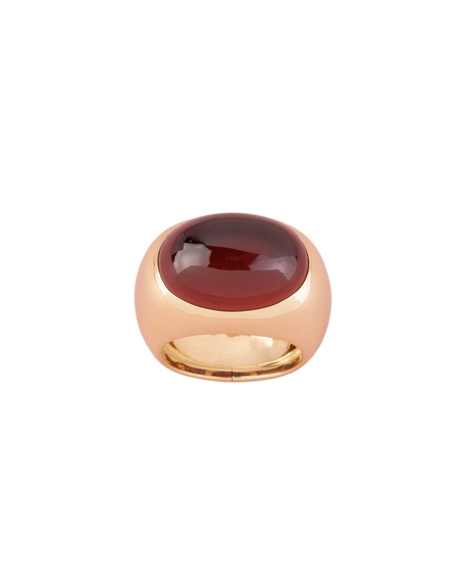 Importante bague Pomellato des années 90 en or jaune 18K sertie d’un grenat taille cabochon.