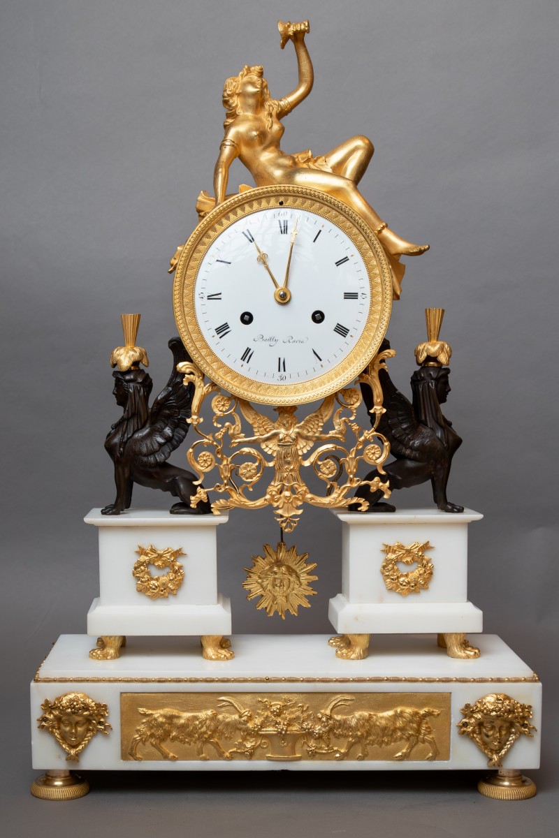 Retrouver le mobilier ou les objets d''art similaires à « Importante pendule Empire "À la Bacchante" signée BAILLY » présenté par Hirsch Antiquités, antiquaire à Paris dans la catégorie Pendule Empire, Horlogerie.