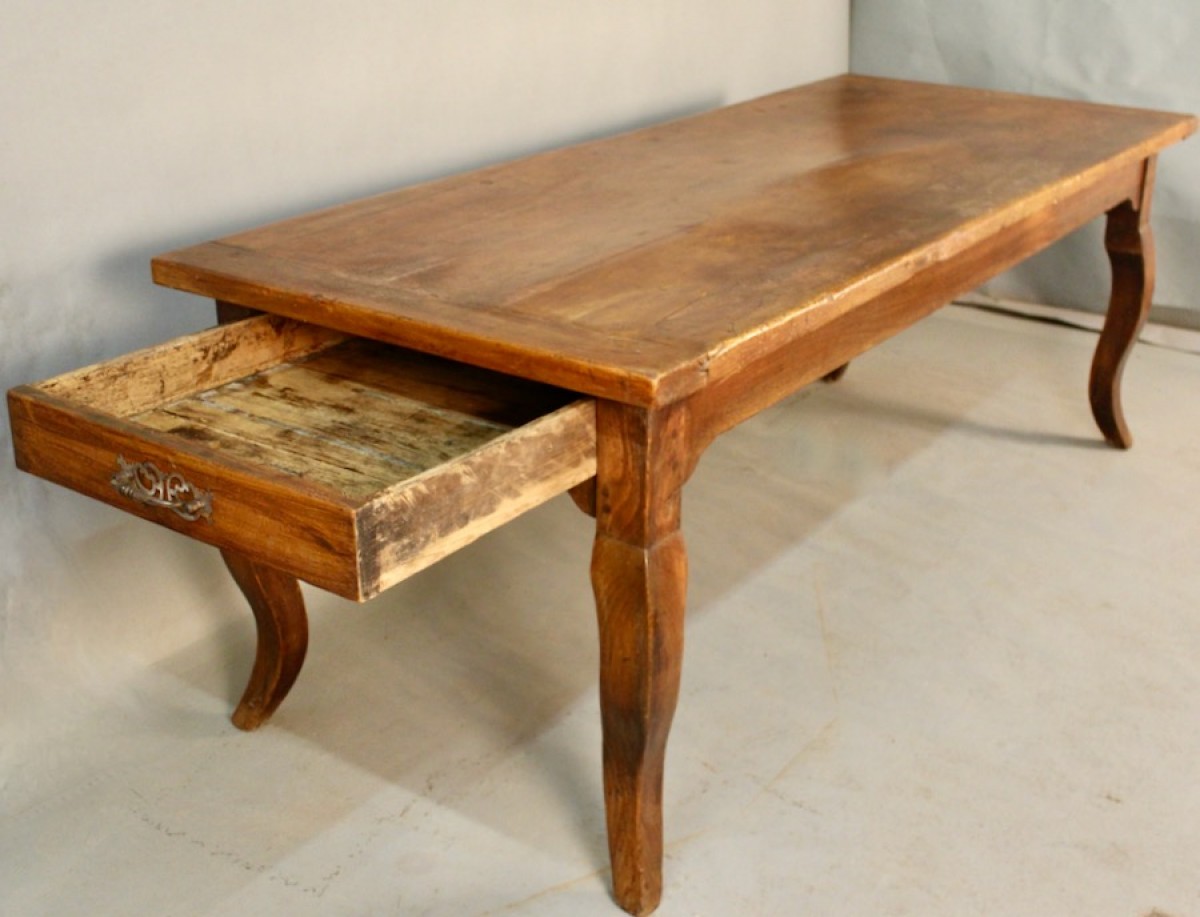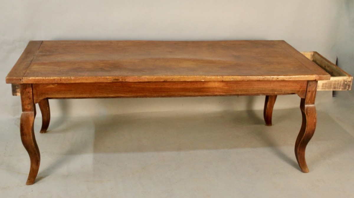 Retrouver le mobilier ou les objets d''art similaires à « Importante table de salle à manger en noyer, Louis XV » présenté par Jean-Yves Buhard, antiquaire à Saint André sur Vieux Jonc dans la catégorie Table & Guéridon Louis XV, Mobilier.