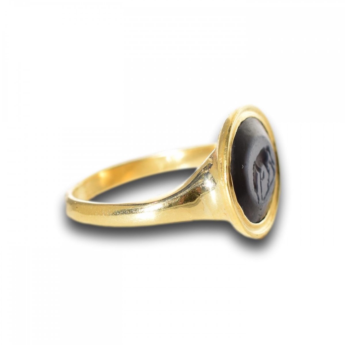 Ancienne intaille de Nicolo représentant un cheval au pâturage. Romain, 1er - 2ème siècle après JC.