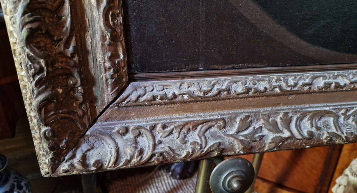 Encadré dans un cadre sculpté et doré du XVIIe siècle