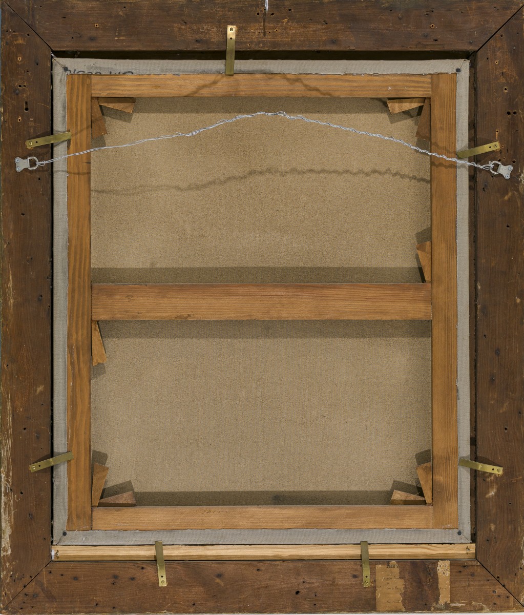 Bon état pour son âge, rentoilé probablement à la fin du XXe siècle. Le tableau est légèrement trop petit pour son cadre en bois sculpté et doré du XVIIe siècle. avec un morceau de bois sous le tableau.