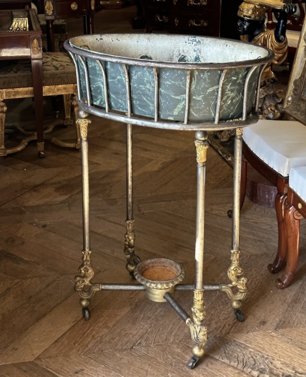 Retrouver le mobilier ou les objets d''art similaires à « Jardinière en acier » présenté par Frédéric Brossy, antiquaire à Rolle dans la catégorie Meuble d'appoint Restauration - Charles X, Mobilier.