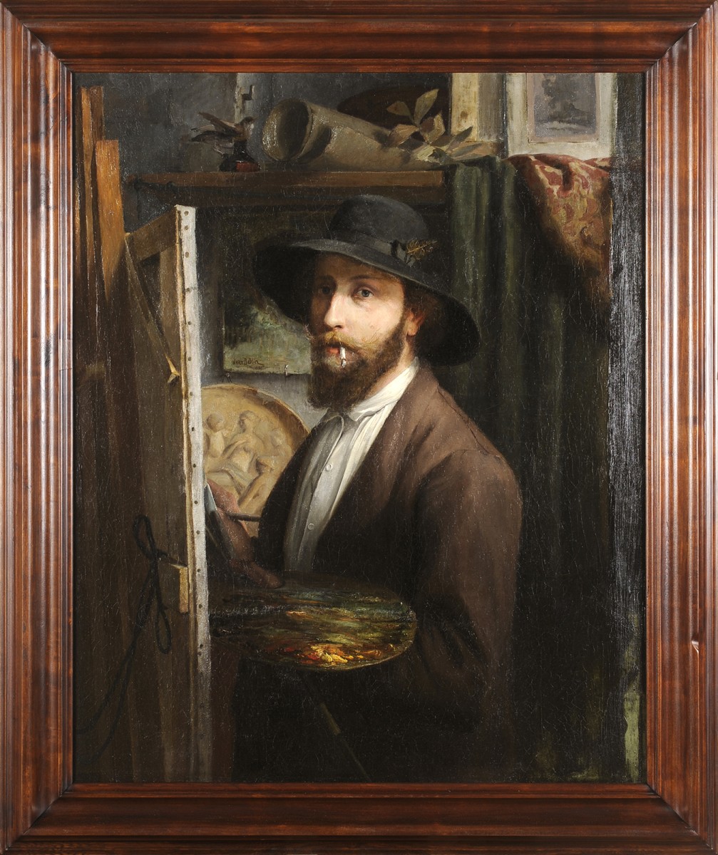 Retrouver le mobilier ou les objets d''art similaires à « Jean Dablin (1858-1923) Autoportrait dans l’atelier 1881 Saint-Quentin Aisne » présenté par Galerie de Frise, antiquaire à Beleymas dans la catégorie Tableaux XIXe siècle Napoléon III, Tableaux et dessins.