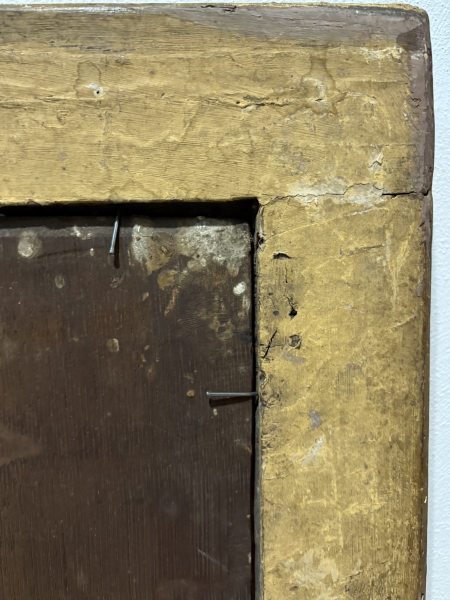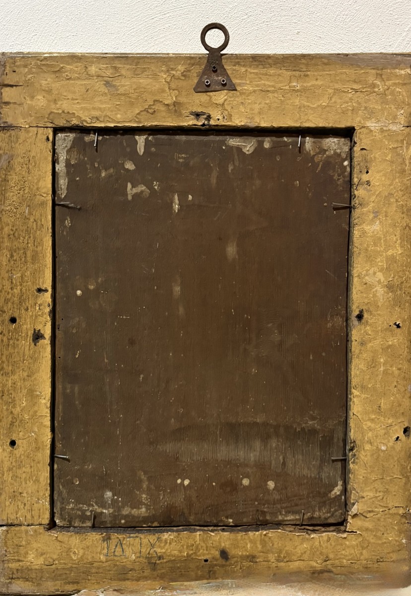 En excellent état, il est encadré dans un magnifique cadre en bois sculpté et doré du XVIIe siècle.