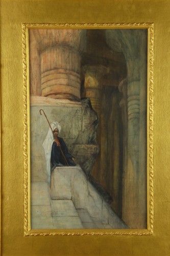 Retrouver le mobilier ou les objets d''art similaires à « Jeune égyptien dans les ruines de Karnak » présenté par Art Revival, antiquaire à Bruxelles dans la catégorie Dessin, Aquarelle & Pastel Art nouveau, Tableaux et dessins.