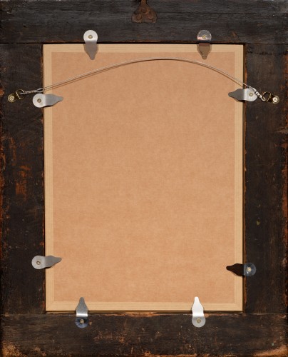 Notre dessin est présenté dans cadre italien en bois noirci du XVIIème siècle dont le bois a acquis avec le temps une superbe patine brillante.