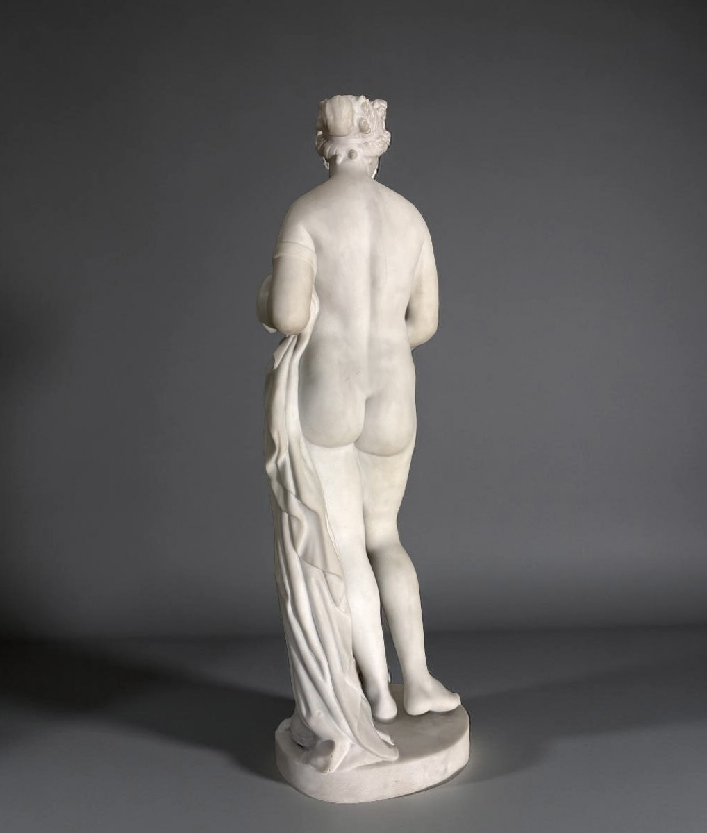 Grande sculpture en marbre blanc représentant Vénus, atelier de John Gibson, Rome, vers 1850. Connue sous le nom de Venere Verticordia ou Vénus teintée, son histoire est fascinante.