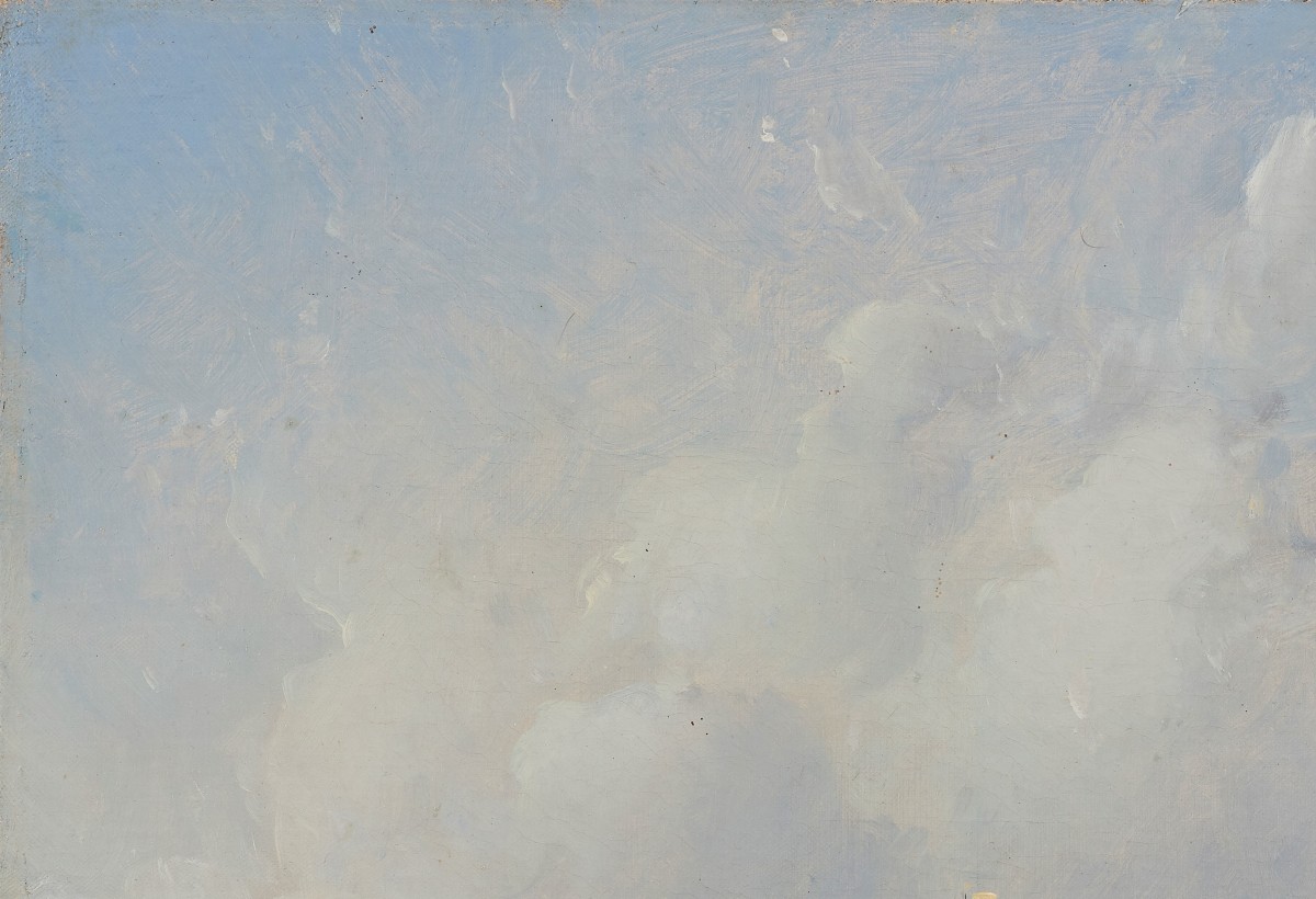 Jules Noël a à son actif toute une série de peintures représentant les ports de Bretagne et de Normandie, dont la nôtre qui provient de sa période de pleine maturité. Sa partie basse est traitée par petites touches superposées qui rendent avec des reflets verdâtres et d’une manière magistrale la brillance de l’eau. La qualité de cette toile est une illustration parfaite du meilleur de l’artiste, elle constitue sans aucun doute l’une des œuvres les plus abouties parmi celles actuellement répertoriées, dans la lignée de ses tableaux représentant les ports de Brest et de Fécamp.