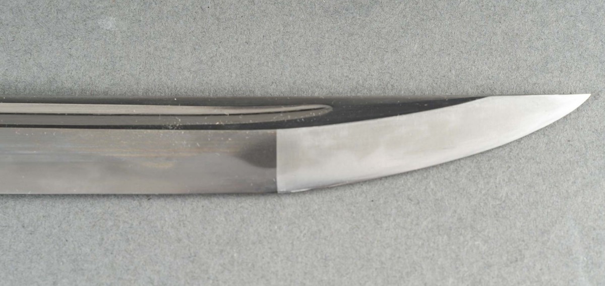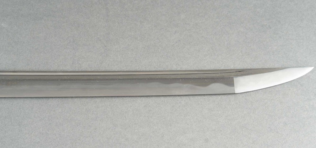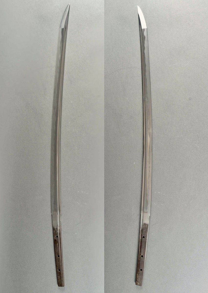 De type shinogi-zukuri, la courbure est torii-sori présente une gorge profonde (kesso) sur les 2 faces du shinogi jusqu'au large kissaki.