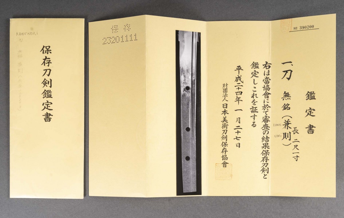 Certificat du NBTHK (Nihon BijutsuToken Hozon Kyokai) daté 24 année de l'ère Heisei (27/01/2013).