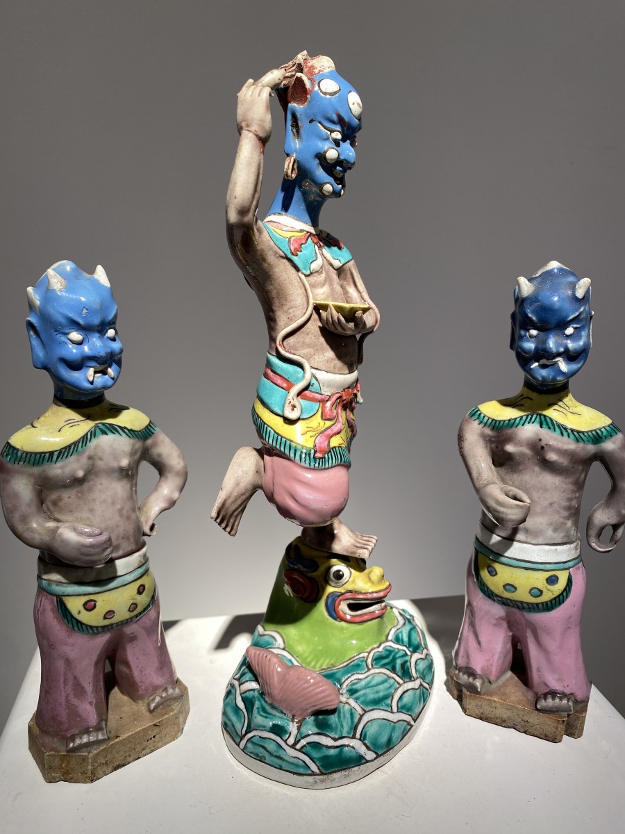 Dans la mythologie chinoise, Kui Xing est le dieu des examens, de la littérature et le saint patron des étudiants. Il est représenté comme une créature hideuse ressemblant à un démon, debout, un pied posé sur la tête d'un poisson-dragon (Ao), tenant un pinceau à la main pour écrire les noms des étudiants qui ont réussi l'examen. Selon le mythe, son personnage est inspiré de l'histoire d'un brillant étudiant qui avait réussi tous les examens officiels, mais qui n'avait pas été autorisé à devenir fonctionnaire en raison de son apparence physique. Désespéré, le jeune homme s'était jeté dans la rivière, d'où un dragon-poisson l'avait emporté au ciel.