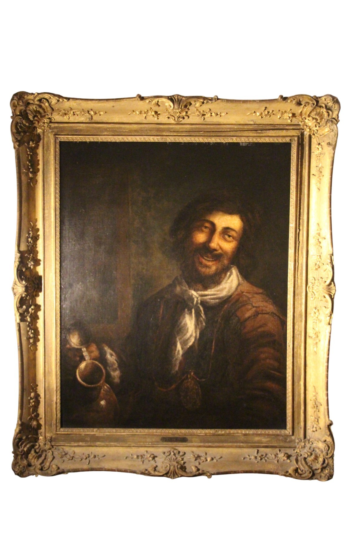Un très beau cadre en bois sculpté du XIXe siècle en complète le décor.