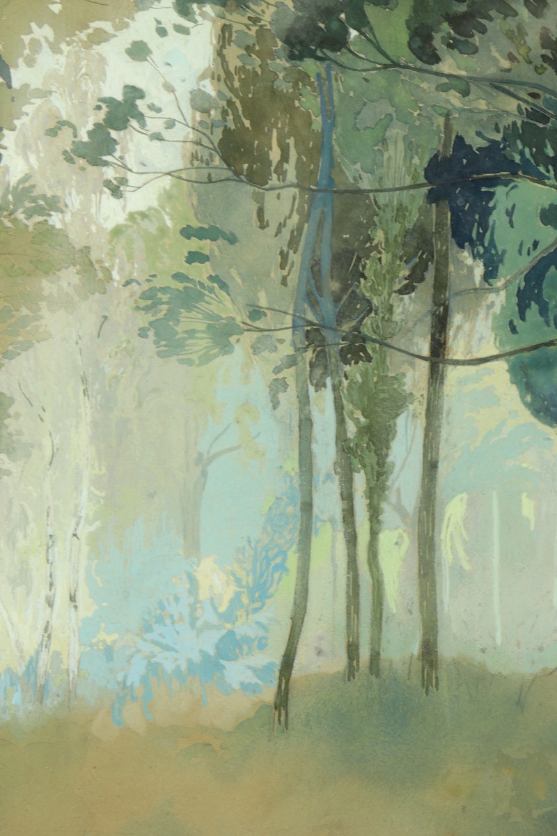 La clairière par Georges de Feure, techniques mixtes sur papier, signé de Feure en bas à droite.