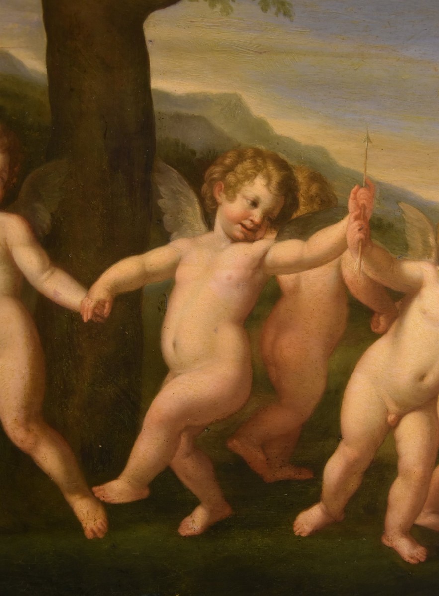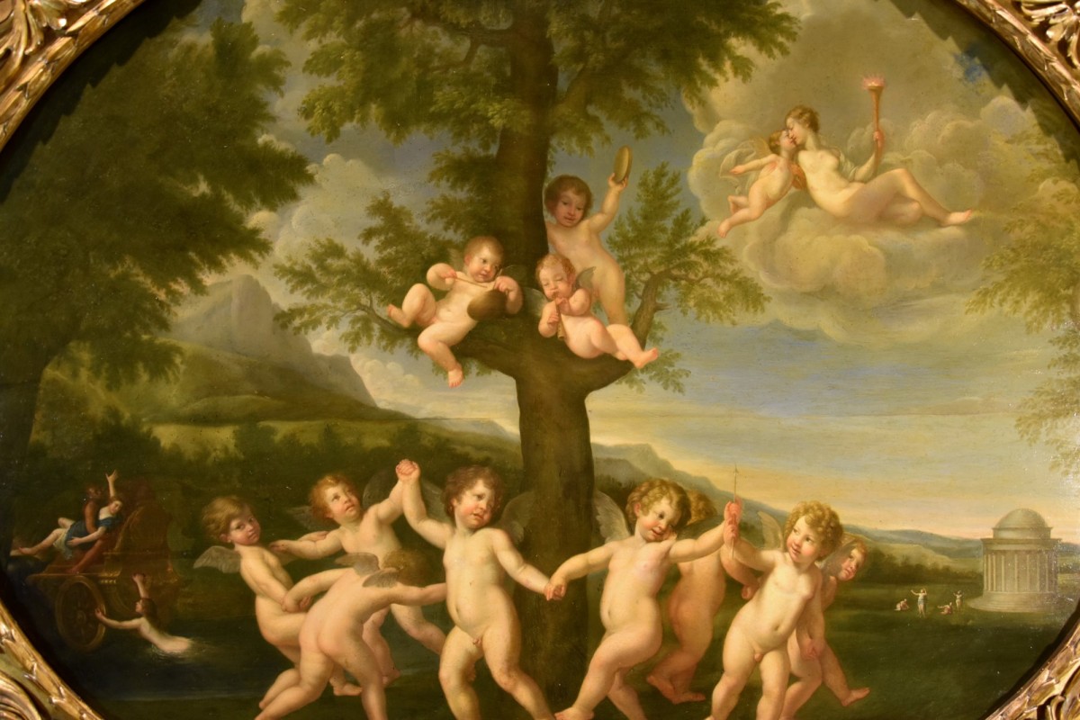 Retrouver le mobilier ou les objets d''art similaires à « La Danse des Amours copie de, Francesco Albani (Bologne 1578 - 1660) » présenté par Antichità Castelbarco, antiquaire à Riva del Garda dans la catégorie Tableaux XVIIe siècle Louis XVI, Tableaux et dessins.