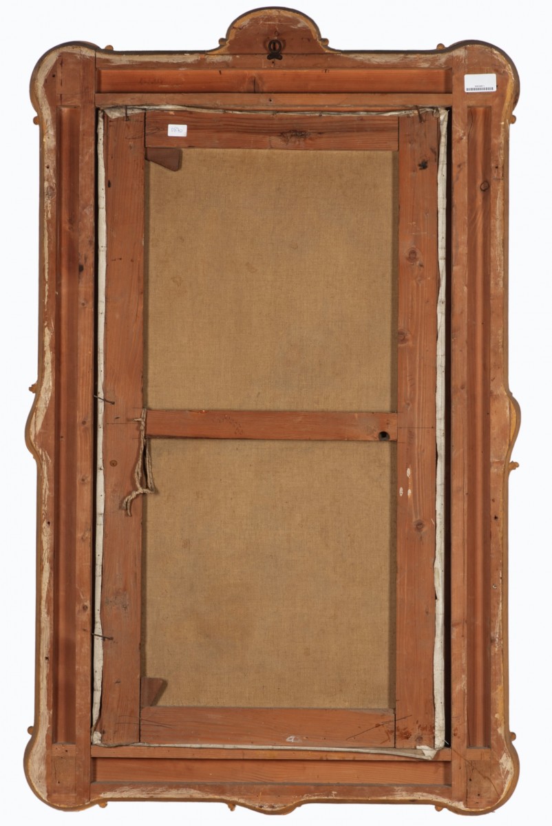 Huile sur toile « La Pomme tentatrice », signée en bas à gauche. Giacomo Mantegazza (1853-1920). Dimensions de la toile : 118 × 63 cm (H × L). Avec cadre : 150 × 90 cm (H × L).