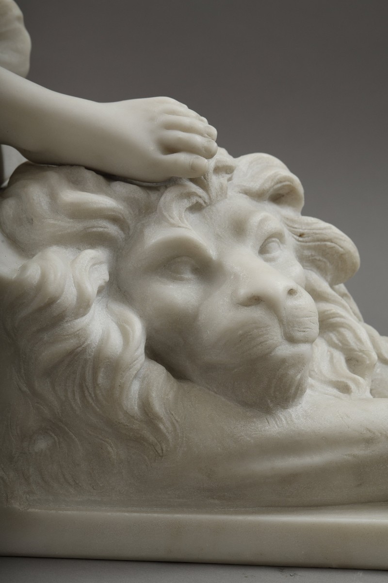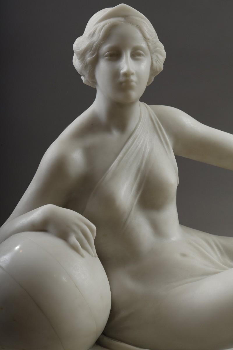 Sur le plan technique, la sculpture témoigne de la finesse d’exécution propre à Biagini. Le drapé, finement travaillé, épouse les formes du corps dans un jeu subtil de transparence et de fluidité, contrastant avec la solidité du socle sur lequel il repose.