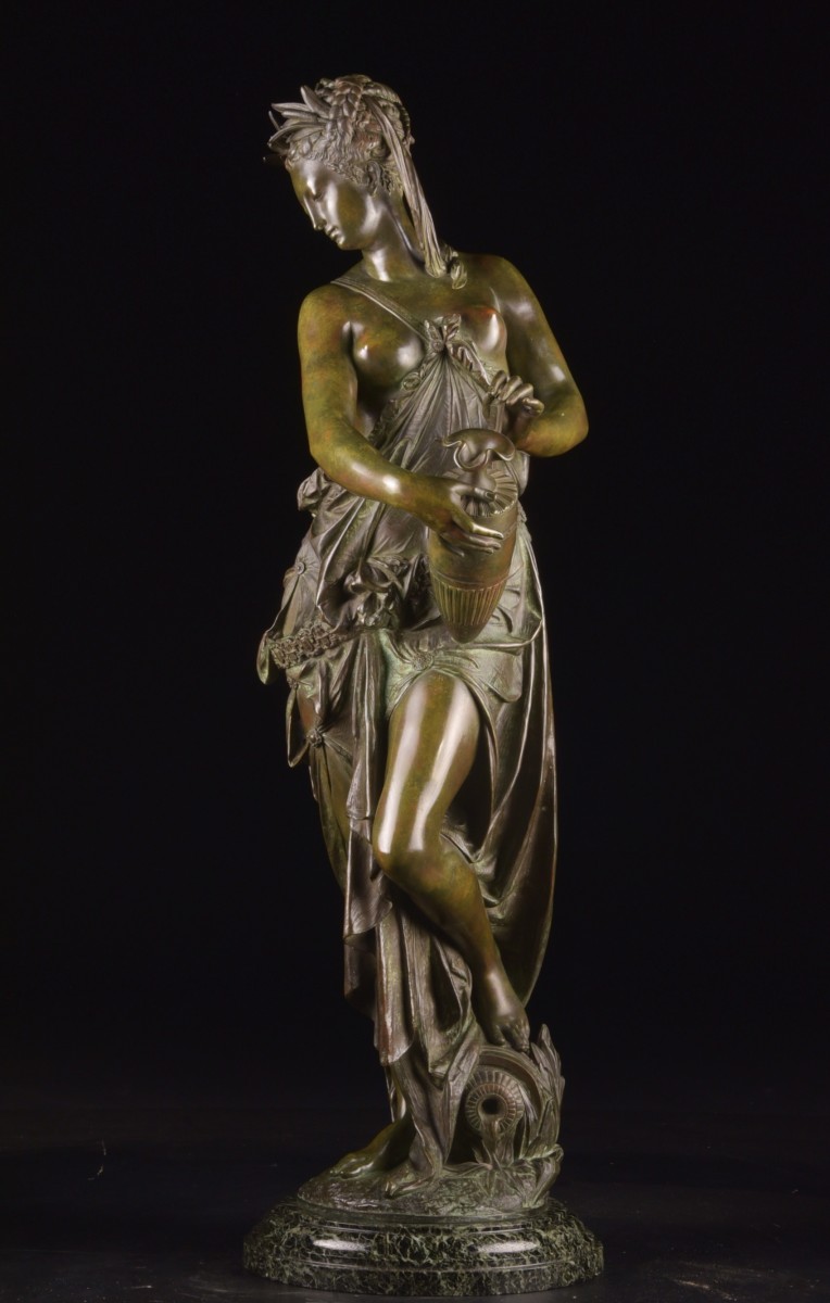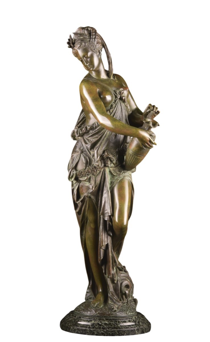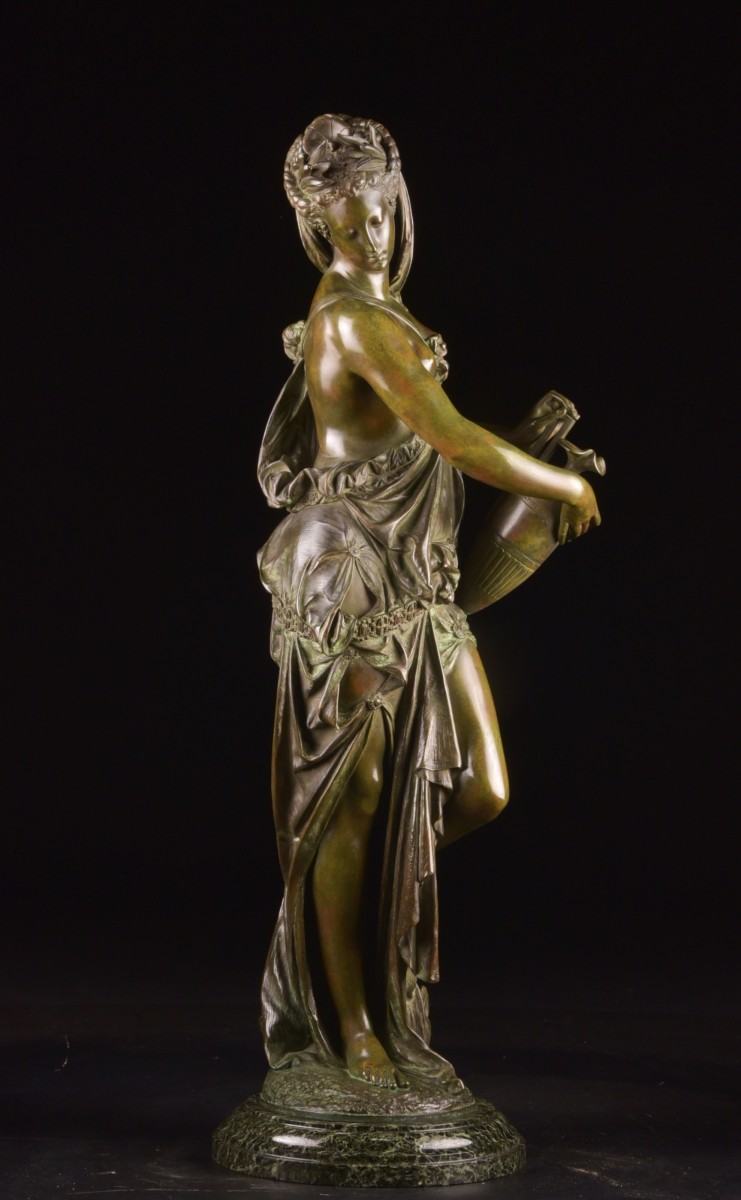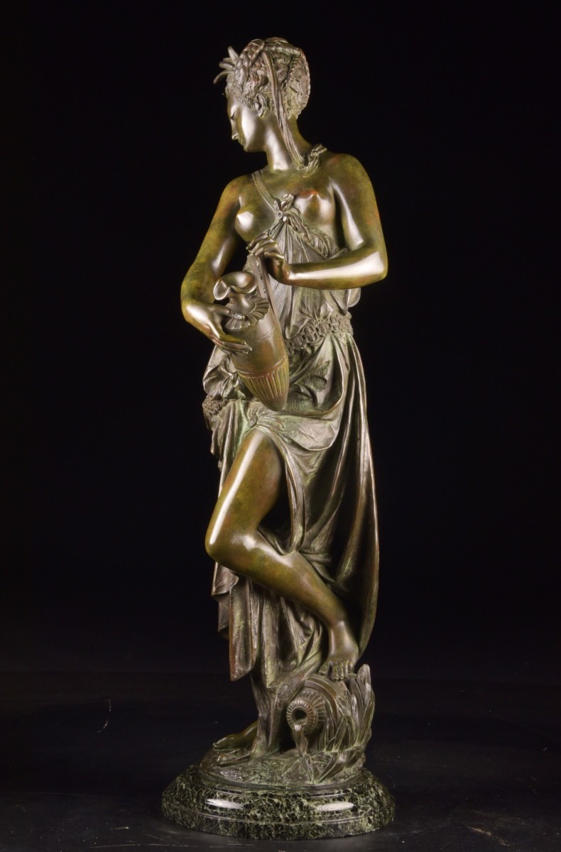 Retrouver le mobilier ou les objets d''art similaires à « La Source, Carrier-Belleuse (1824–1887) » présenté par Mora Antiques, antiquaire à Bilzen dans la catégorie Sculpture en Bronze Napoléon III, Sculpture.
