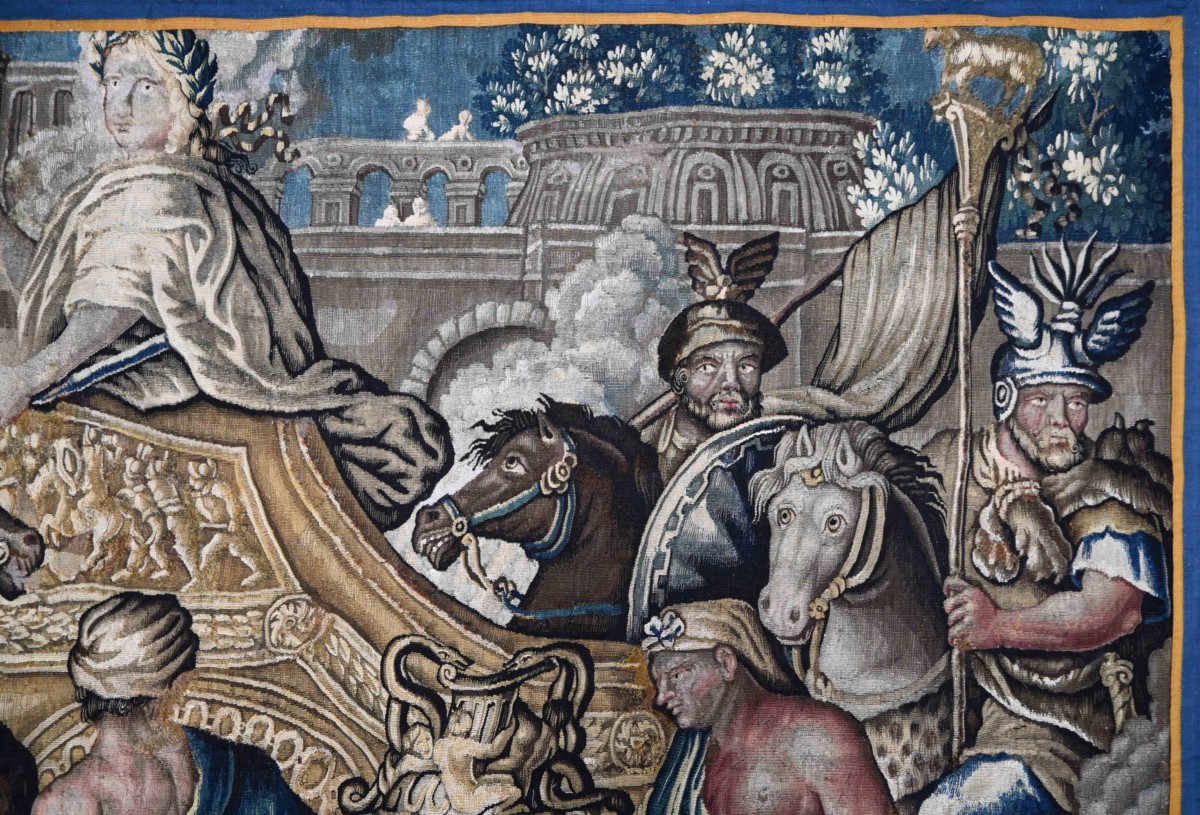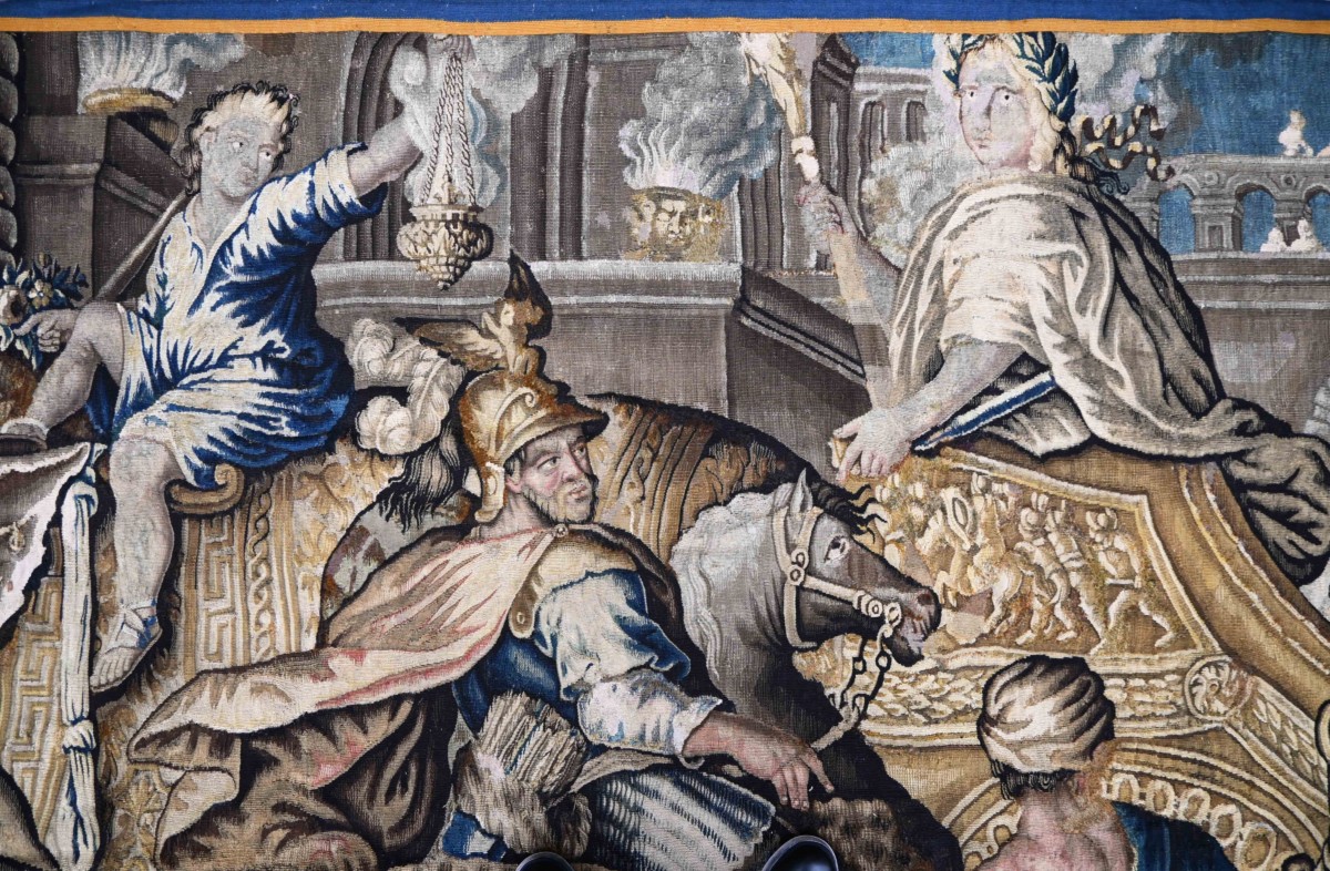 Au cœur du XVIIème siècle, sous l'impulsion de Louis XIV, l'image d'Alexandre le Grand devient le double héroïque du Roi-Soleil. Cette tapisserie illustre le moment le plus glorieux de l'épopée macédonienne : la prise de Babylone.