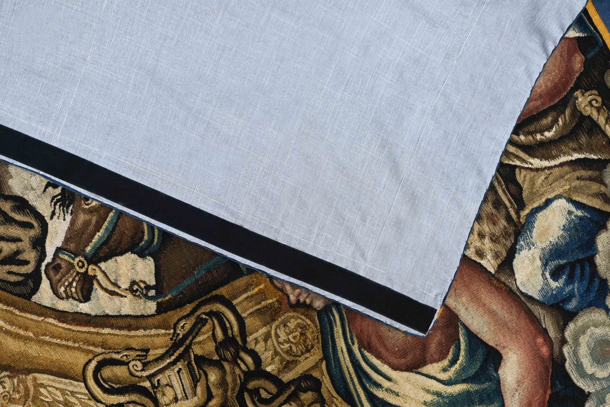 Cette magnifique tapisserie ayant bénéficié d'un nettoyage en profondeur aussi d'un doublage à la main en tissu 100% lin, et à une vérification minutieuse par nos experts dans notre Atelier artisanal. Il est désormais prête à orner votre intérieur