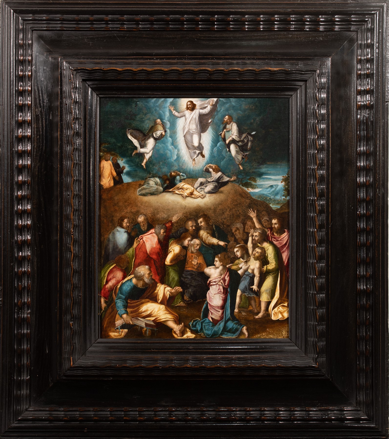 Cette œuvre est une version réduite et peinte sur cuivre de la célèbre Transfiguration de Raphaël, chef-d’œuvre du maître italien réalisé entre 1516 et 1520, aujourd’hui conservé aux Musées du Vatican. Le tableau reprend avec de légères variantes la composition en deux registres : en haut, le Christ transfiguré, entouré de Moïse et Élie dans une mandorle de lumière ; en bas, les apôtres et les témoins du miracle, saisis dans une gestuelle expressive et dramatique ainsi que le miracle du garçon possédé.