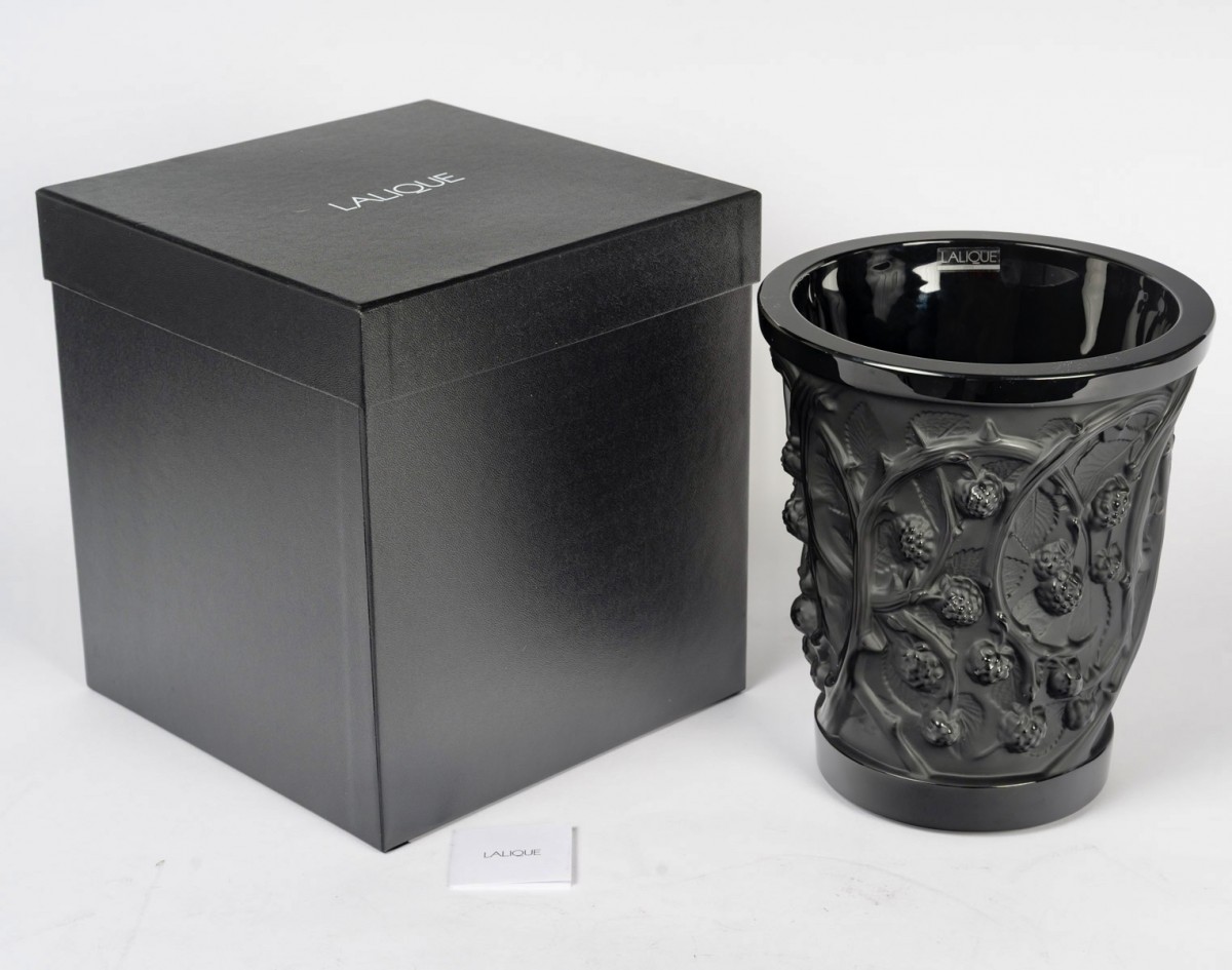 Vase "Mûres" en cristal noir de Lalique France. Signature gravée et numéroté. Parfait état. Neuf avec coffret et étiquette. hauteur : 25 cm