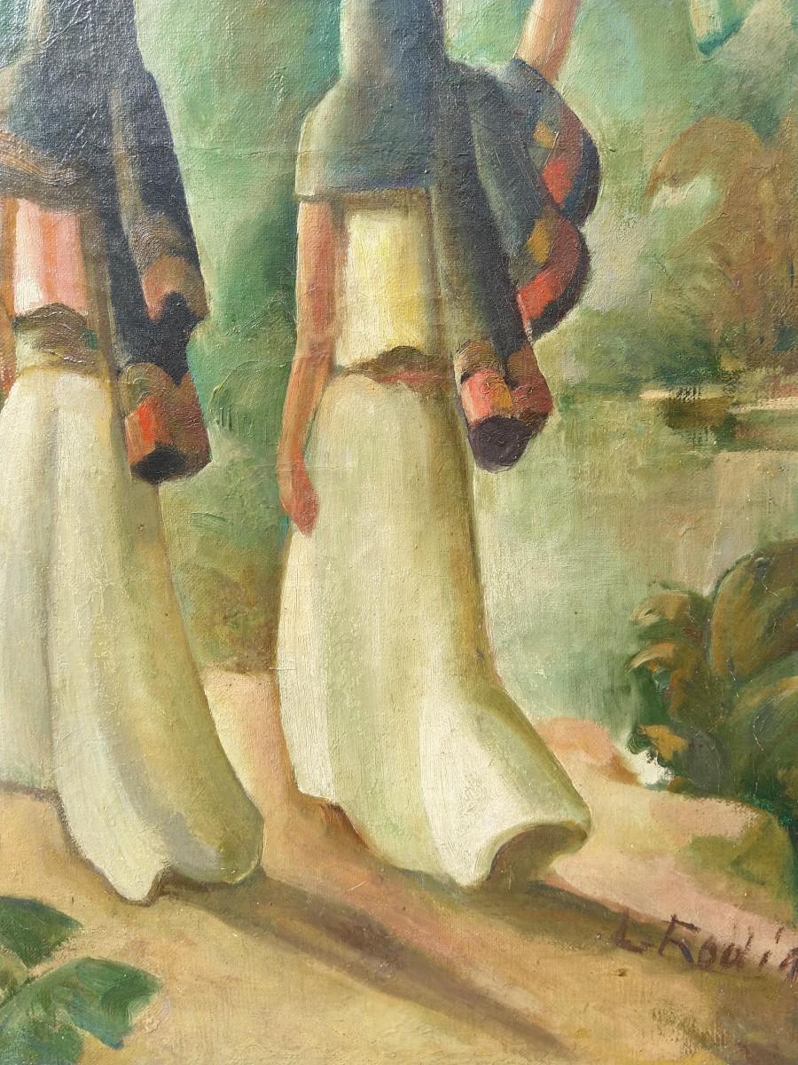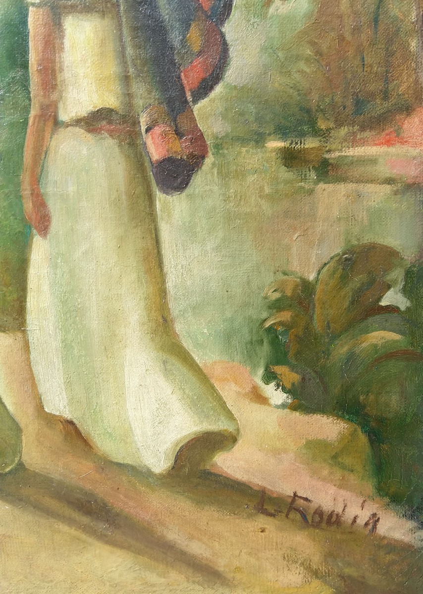 Une huile sur toile mesurant 61X50 cm représentant des lavandières signée en bas à droite par Laura RODIG PIZARRO (1901-1972) circa 1928