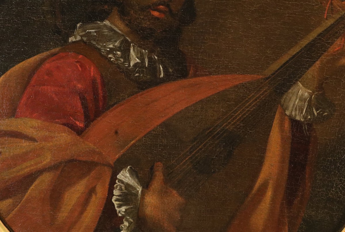 Le choix de la composition et le style de cet intéressant portrait d'un jeune luthiste révèlent dès le premier regard une forte influence caravagiste, tant dans le clair-obscur prononcé, ici savamment dosé, que dans l'incidence de la lumière qui, provenant d'une source extérieure, fait ressortir la silhouette solide du musicien sur le fond monochrome.