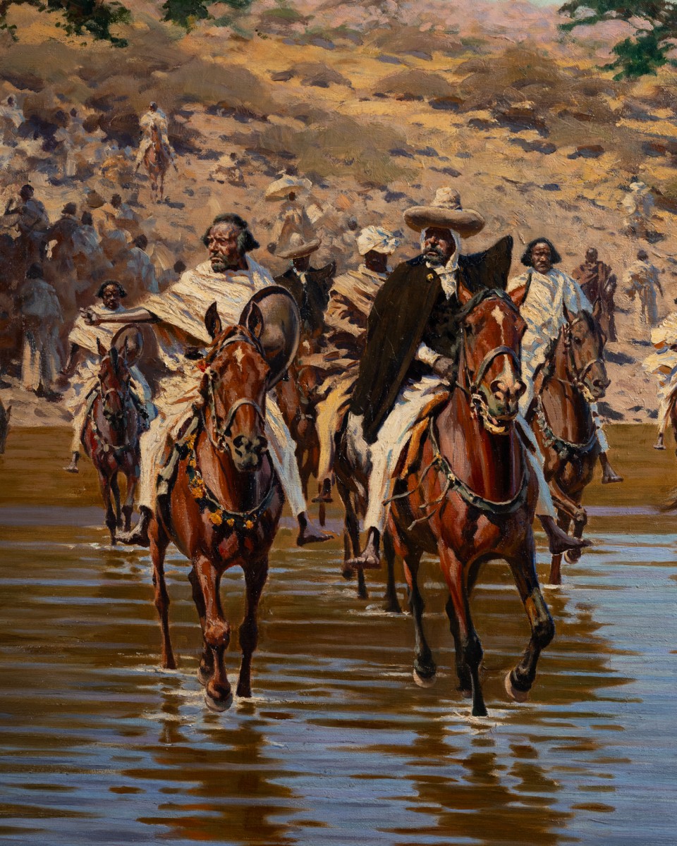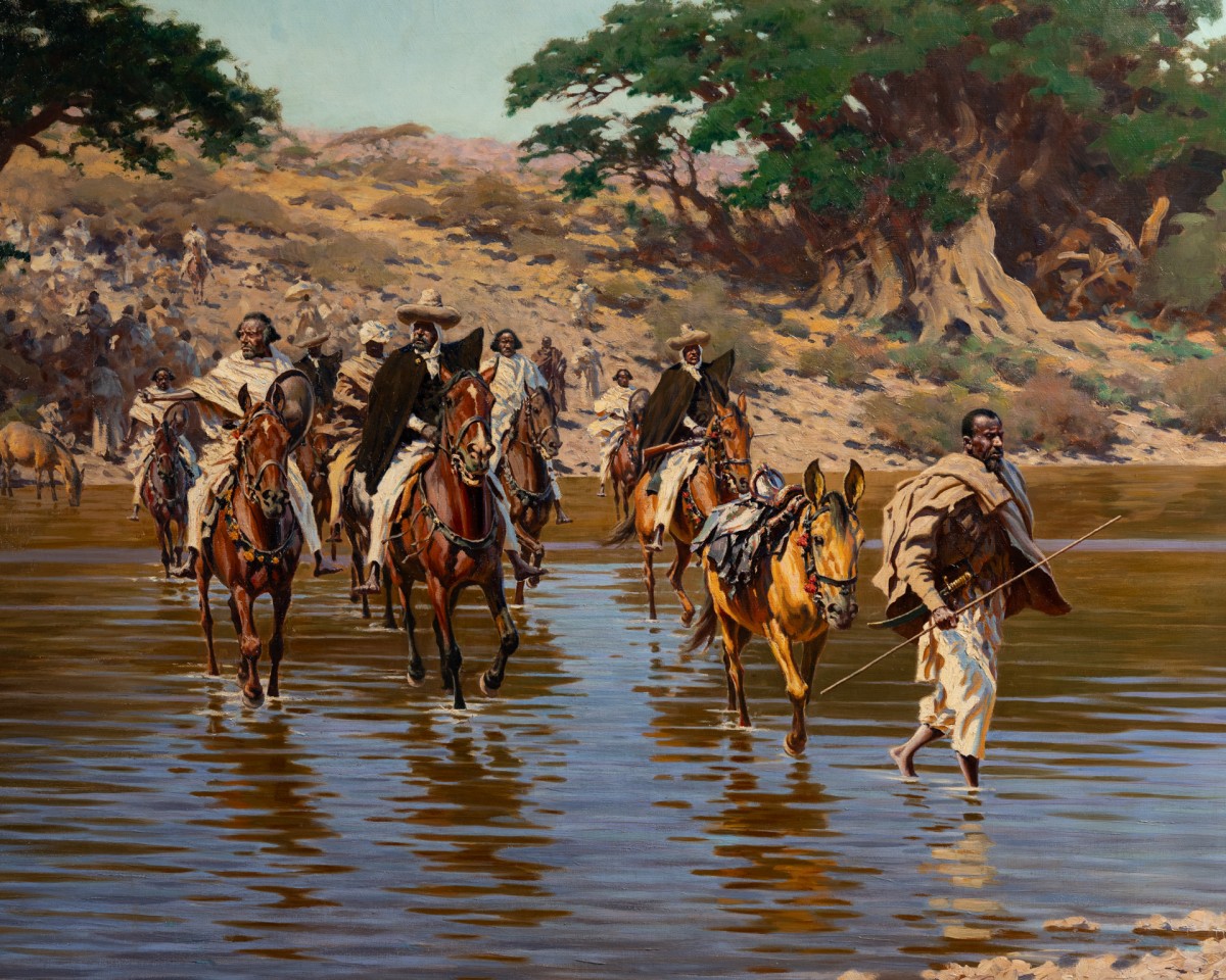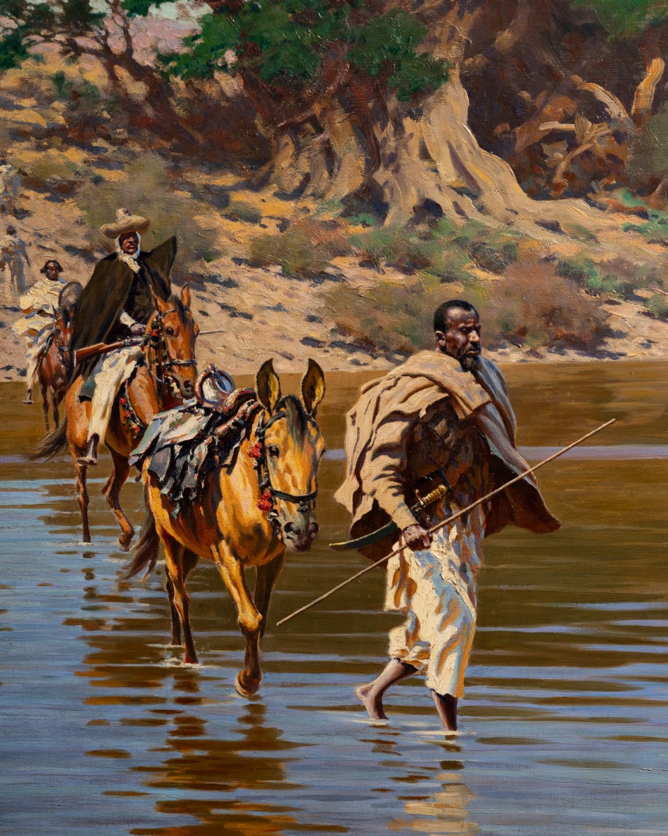 Le tableau intitulé passage du gué par des cavaliers fait suite à son très long séjour dans la corne de l’Afrique en Abyssinie aujourd’hui dénommé Ethiopie,