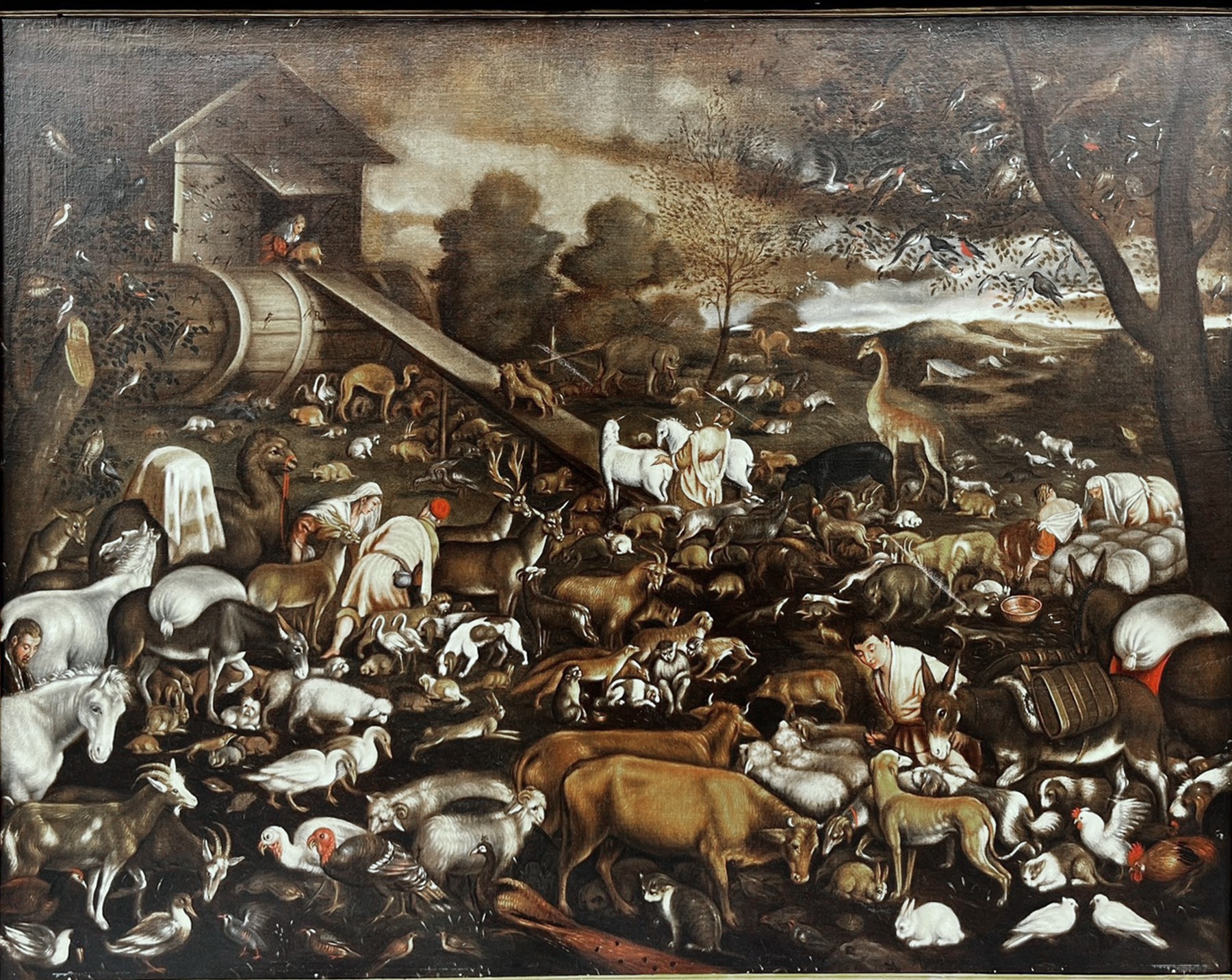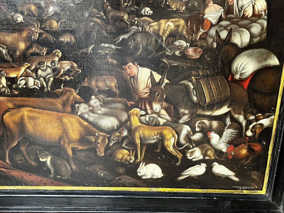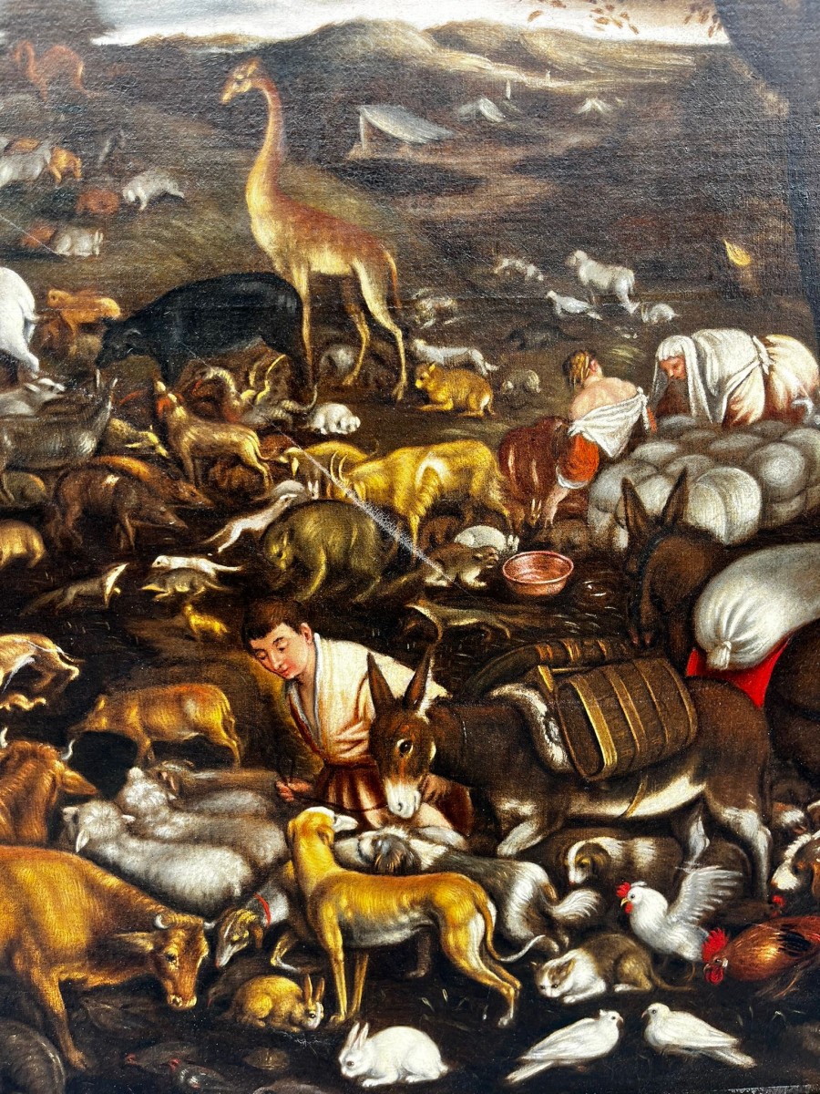 Retrouver le mobilier ou les objets d''art similaires à « L’entrée des animaux dans l’arche de Noé - Italie vers 1600 » présenté par Poisson et Associés, antiquaire à Paris dans la catégorie Tableaux XVIIe siècle Louis XIII, Tableaux et dessins.