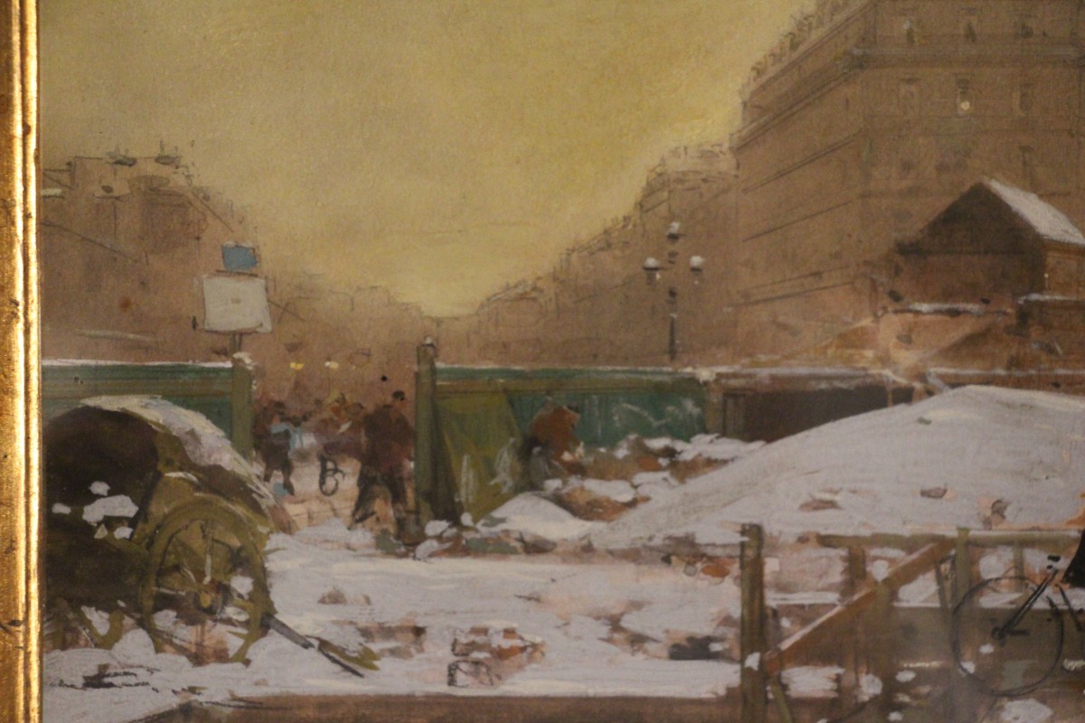 Gouache représentant l'aménagement du métropolitain parisien sur les grands boulevards signée de Luigi Aloys-françois-Joseph Loir, dit Luigi Loir, né le 22 décembre 1845 à Goritz en Empire d'Autriche (devenue Nova Gorica en Slovénie), et mort le 9 février 1916 à Paris, est un peintre , illustrateur et lithographe français.