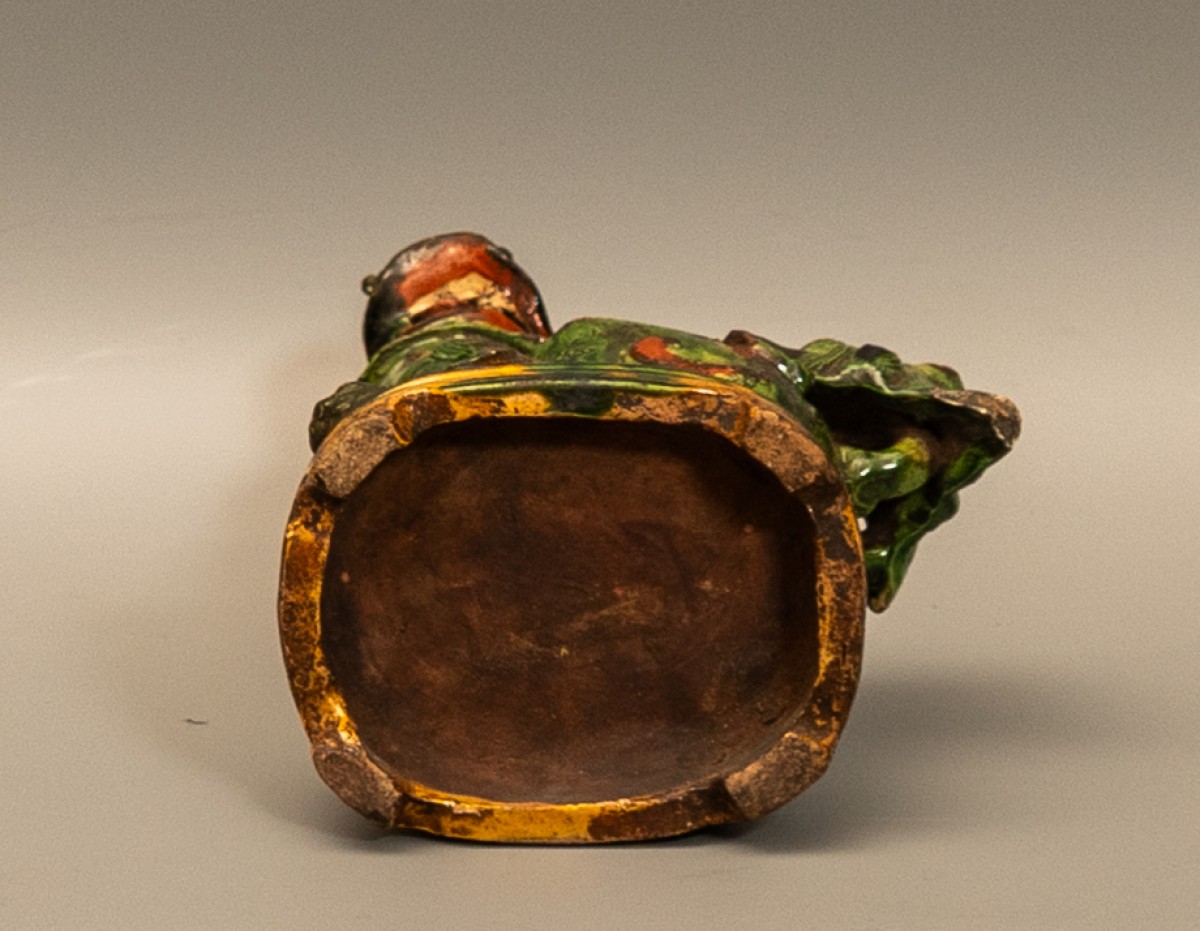 Cf. Sotheby's Londres, Chinese Ceramics and Works of Art, 12 novembre 2014, lot 132 (lion gardien en grès émaillé sancai comparable, nord de la Chine, XVIIIe siècle).